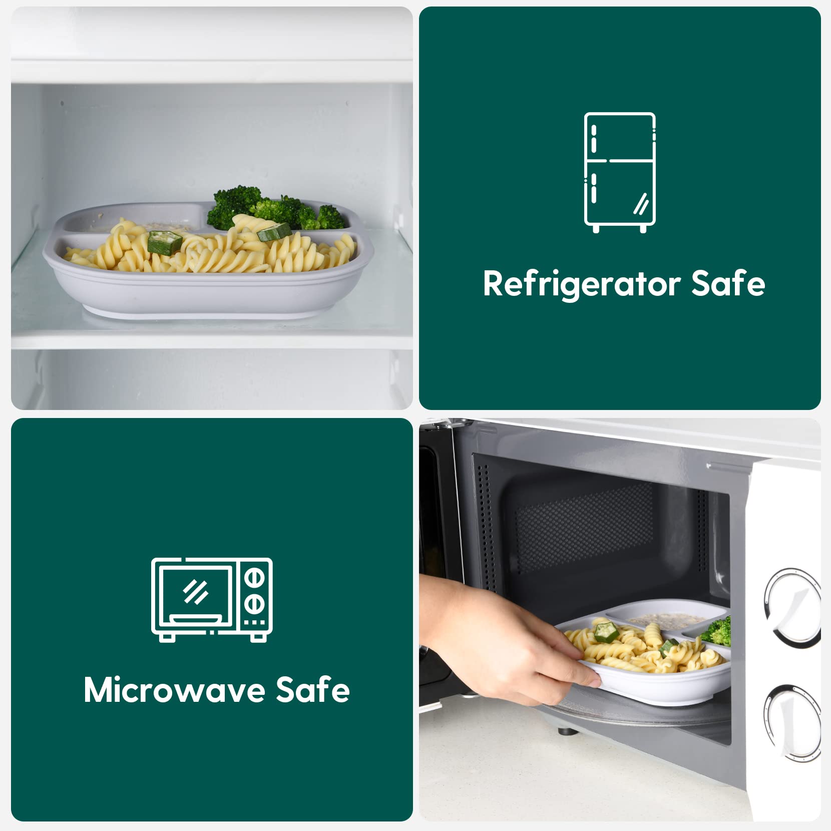 • 【DISHWASHER, MICROWAVE & OVEN SAFE】Waterproof, quick-drying, dishwasher safe. The toddler plates can withstand both low and high temperatures, making it easy to transition from the refrigerator or freezer to the oven or microwave.