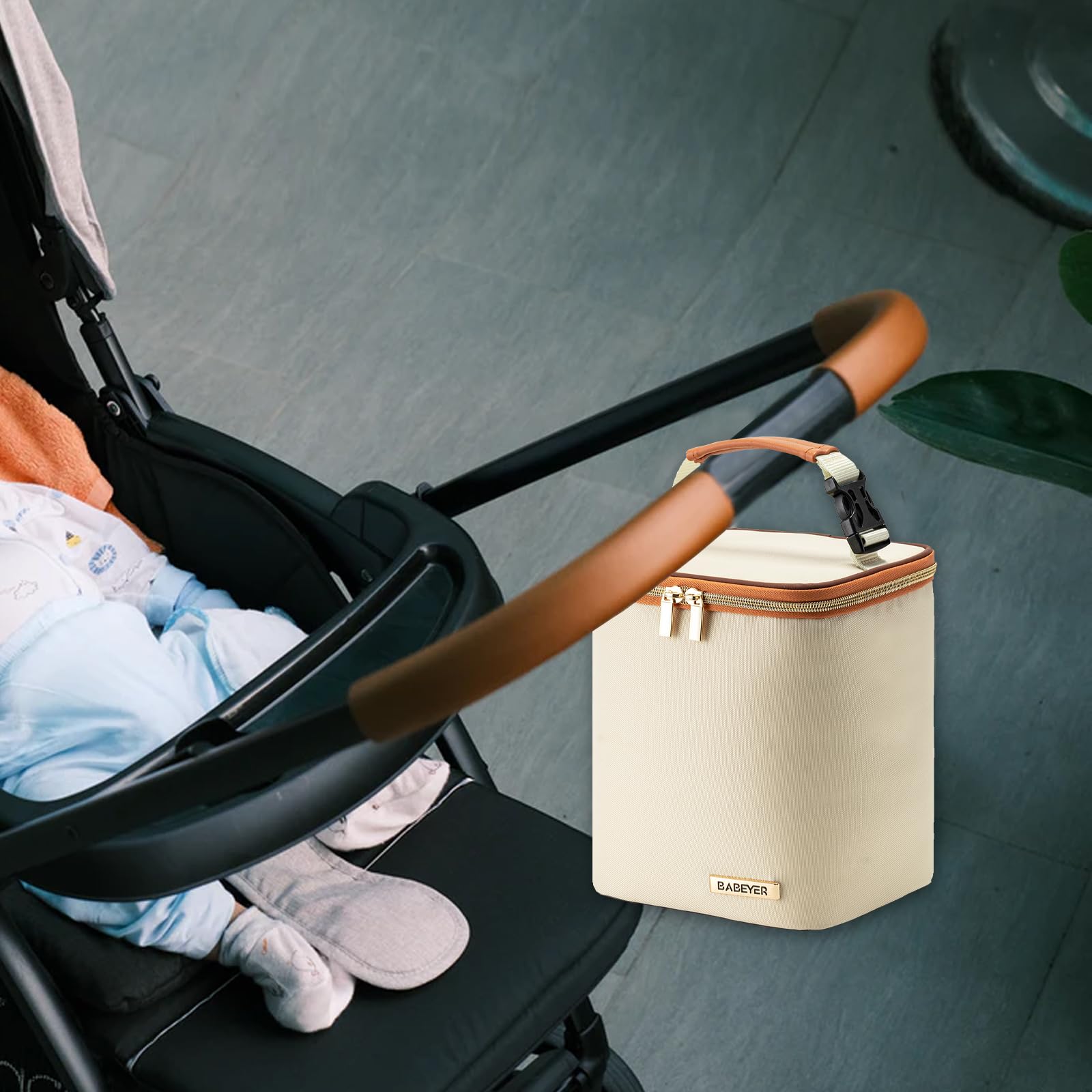 • High Quality:BABEYER Baby bottle bag is made of high Polyester dirt-proof fabric, and durable smooth mental zipper. The lining of the cooler bottle bag are waterproof and wipeable. The side pocket can put some useful items, like phones, keys and so on