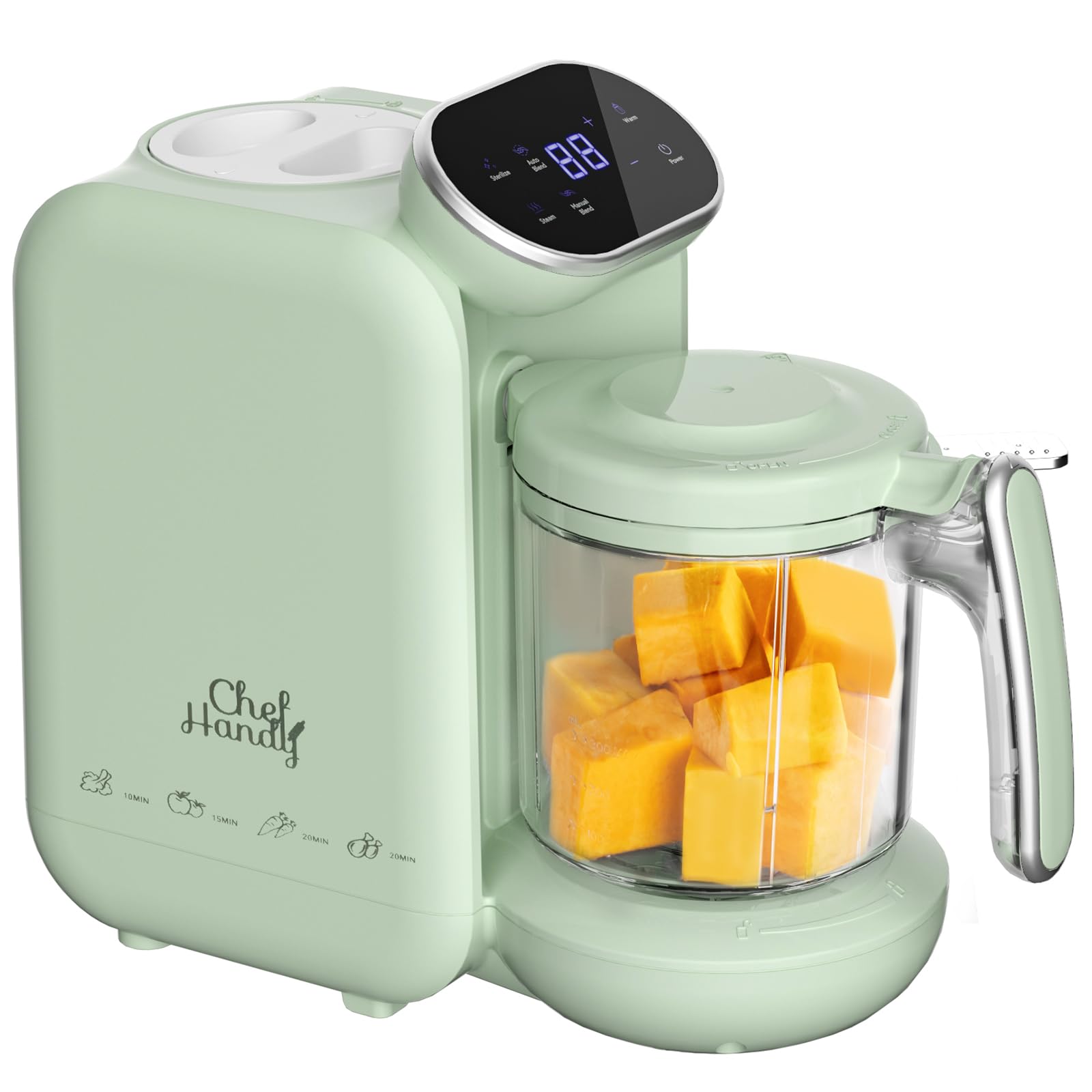 Baby Food Maker, 5 in 1 Baby Food Processor with Steaming Basket, Auto Cooking & Grinding, Touch Screen Control, Baby Steamer and Blender, Baby Food Puree Maker Warmer Mills Machine (Green)