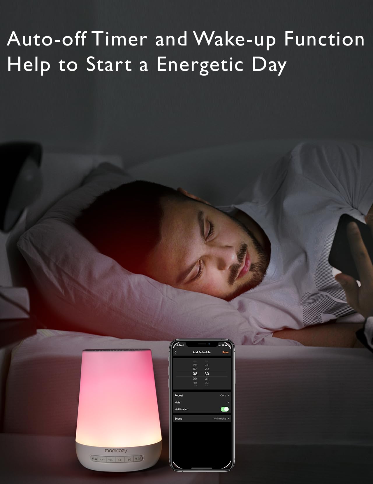 Baby Sound Machine, Momcozy White Noise Machine for Baby Sleeping with Night Light, Toddler Sleep Trainer with 34 Soothing Sounds, Timer, App Remote Control, Personal Sleep Routine (Blue)