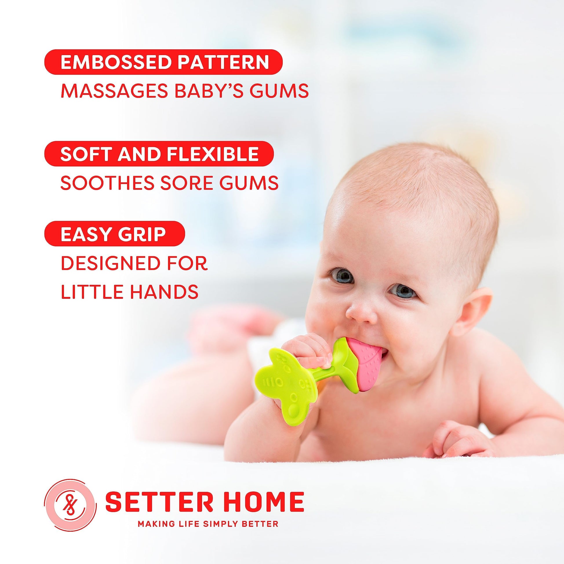 • ๐ŸŒŸ Soft & Durable Design: Designed to be soft and flexible yet durable, our teething toys provide gentle relief for your baby's gums while standing the test of time.