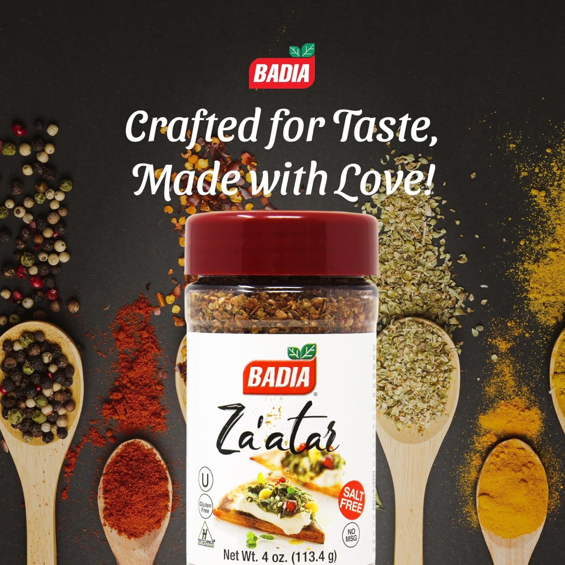 Badia Za'atar Mediterranean Seasoning Blend, 4 oz - Sesame Seeds, Sumac, Spices, Salt Free, Kosher, Halal, No MSG, Gluten Free
