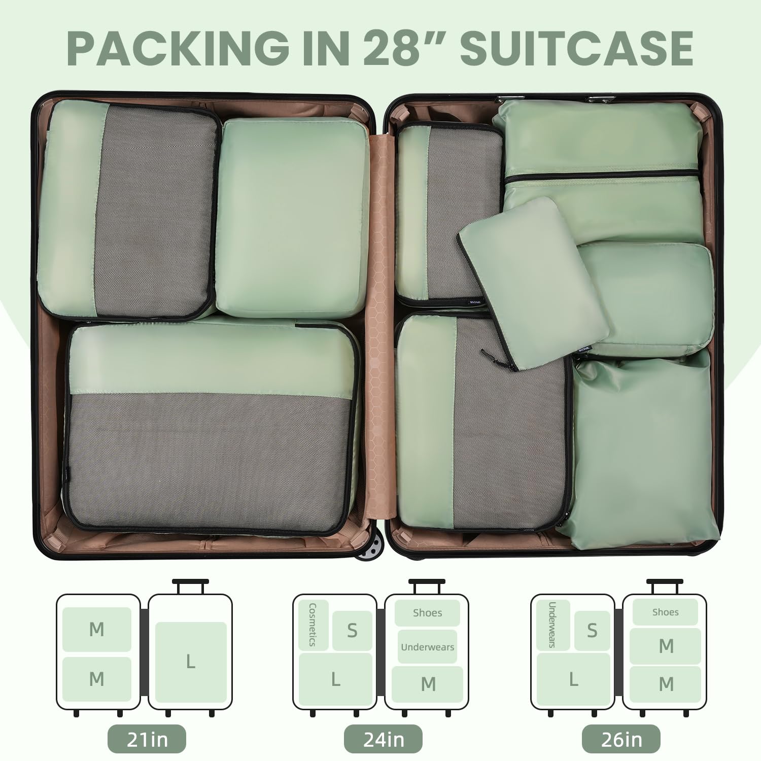 BAGAIL 8 Set/9 Set Packing Cubes Luggage Packing Organizer for Travel, Suitcase Packing Bags for Travel Accessories(Matcha Green, 9 Set)