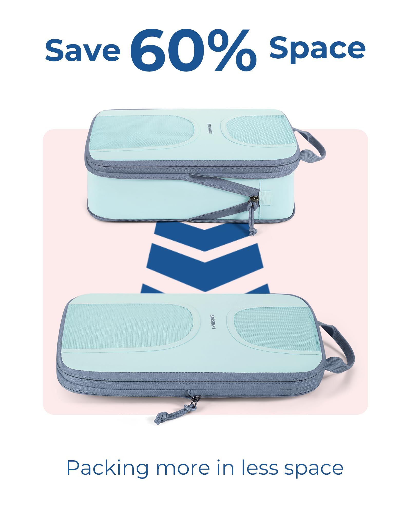 BAGSMART Compression Packing Cubes, 6 Set Packing Cubes for Suitcases, Lightweight Suitcases Organizers Bag Set & Compression Travel Cubes, Travel Essentials Packing Organizers Sky Blue
