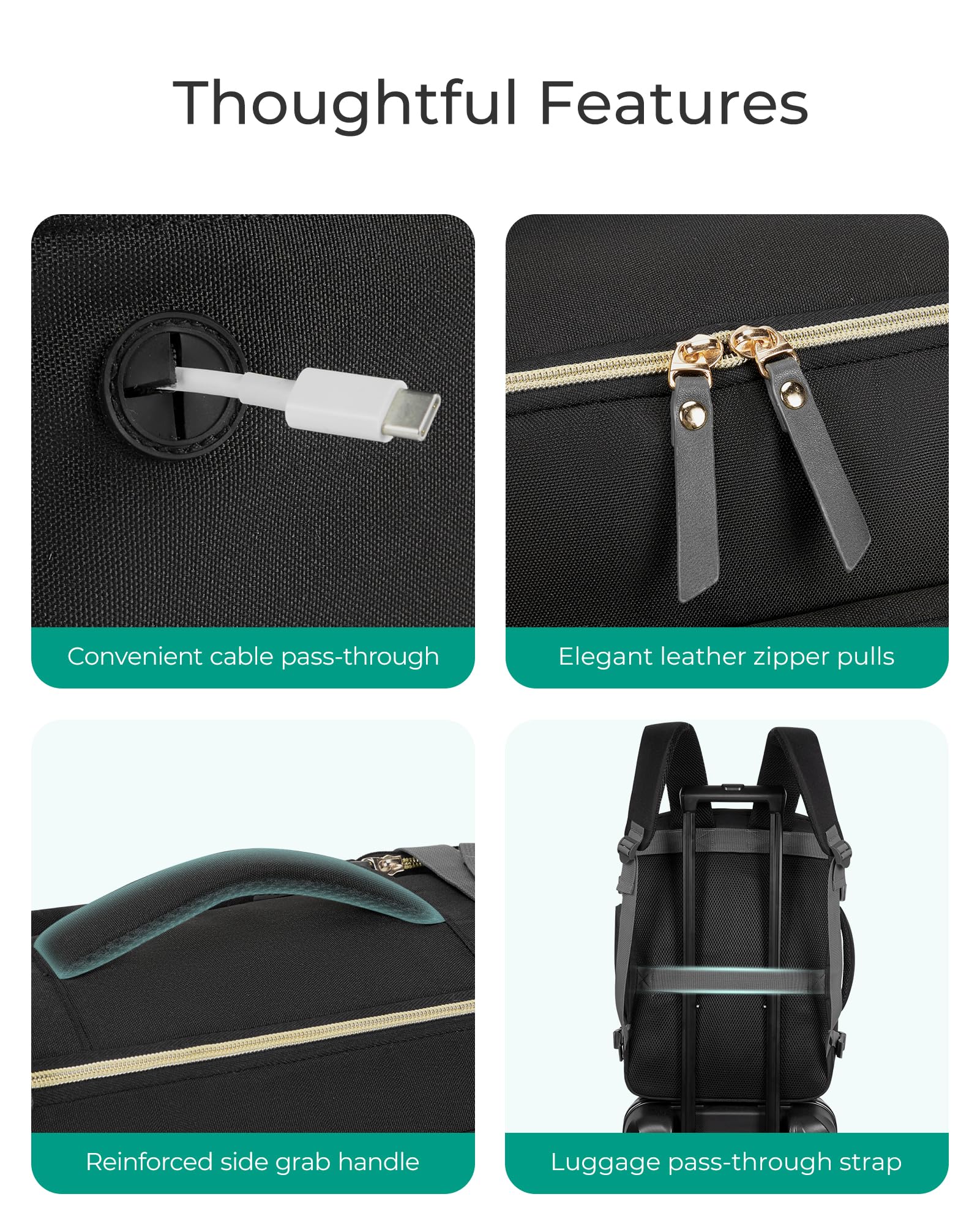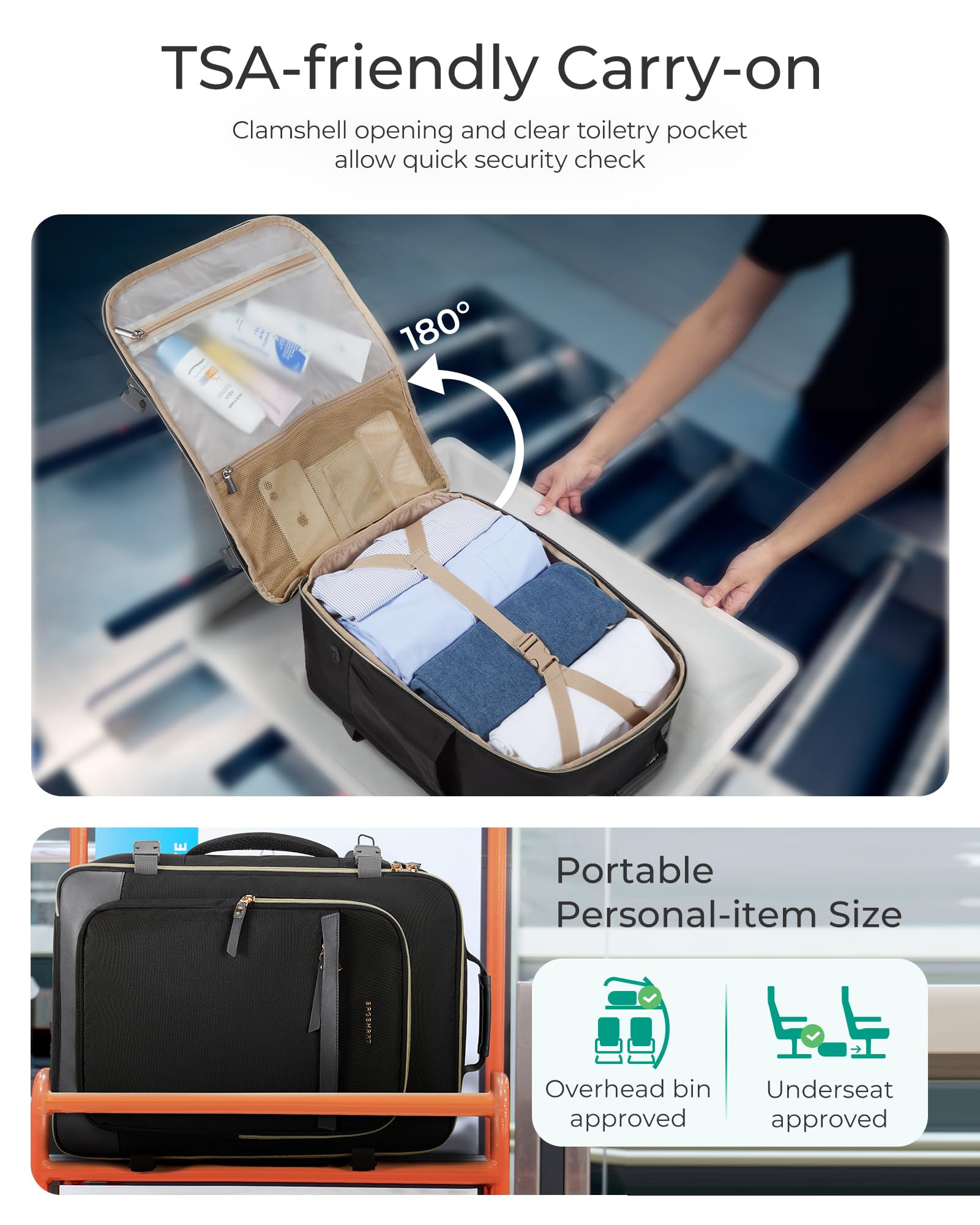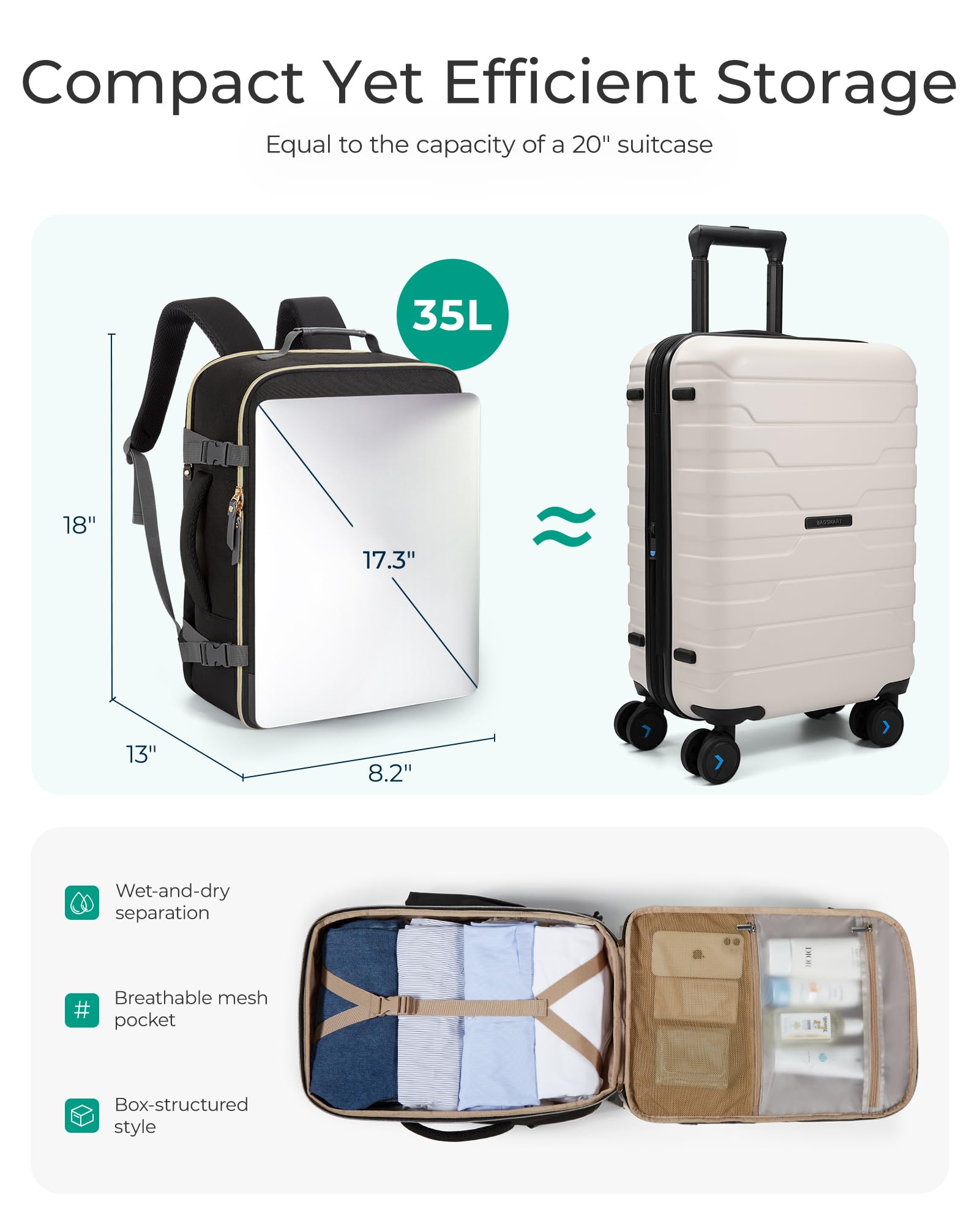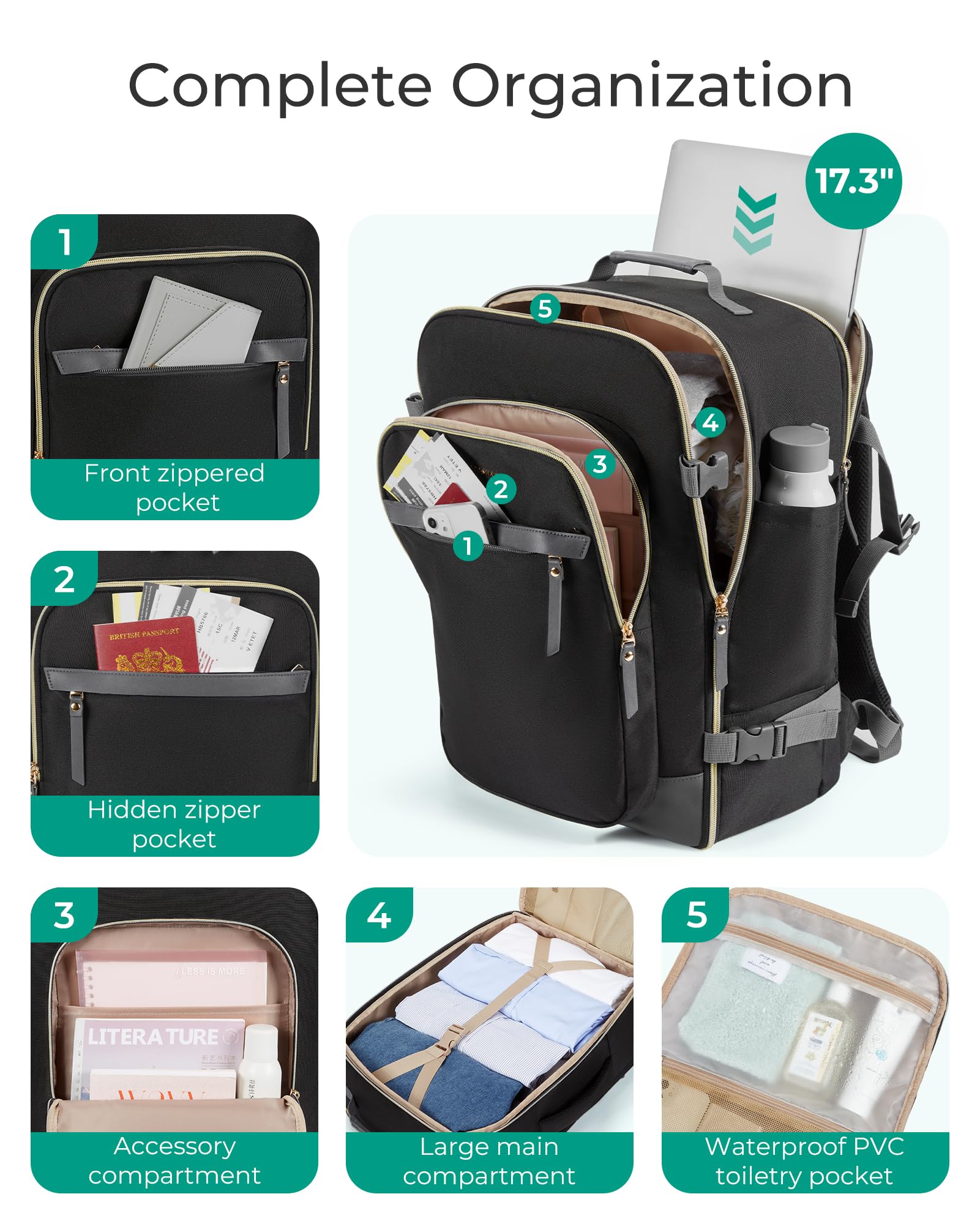 • 【Ample Storage with 35L Capacity】Whether you're off for a weekend getaway or an extended trip, enjoy the spaciousness of 35L capacity. This carry on backpack accommodates everything from multiple outfits to tech gear, including a dedicated compartment for a 17.3-inch laptop. It's designed to meet the packing needs of dynamic female travelers who require versatility and organization