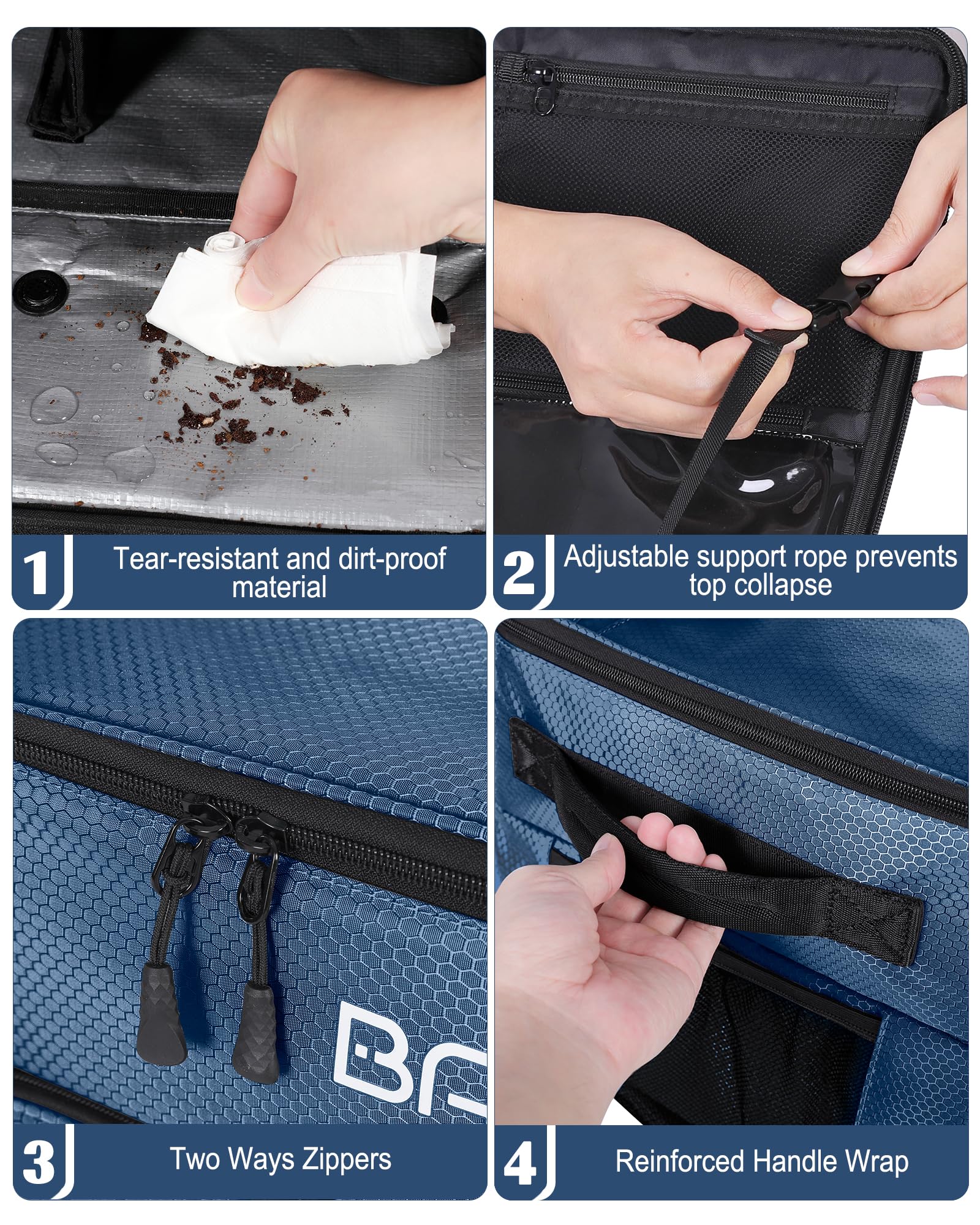 • 【High-Quality Materials】 - The shoe compartment at the bottom utilizes PE film woven fabric, designed to resist dirt. If your shoes accidentally soil this compartment, a simple wipe of surface dirt ensures cleanliness. The explosion-proof zipper, equipped with sturdy double pull-ropes, assures smooth and easy use. The overall fabric of the golf trunk organizer is 1000D Oxford fabric, known for its water repellent and wear-resistant features.