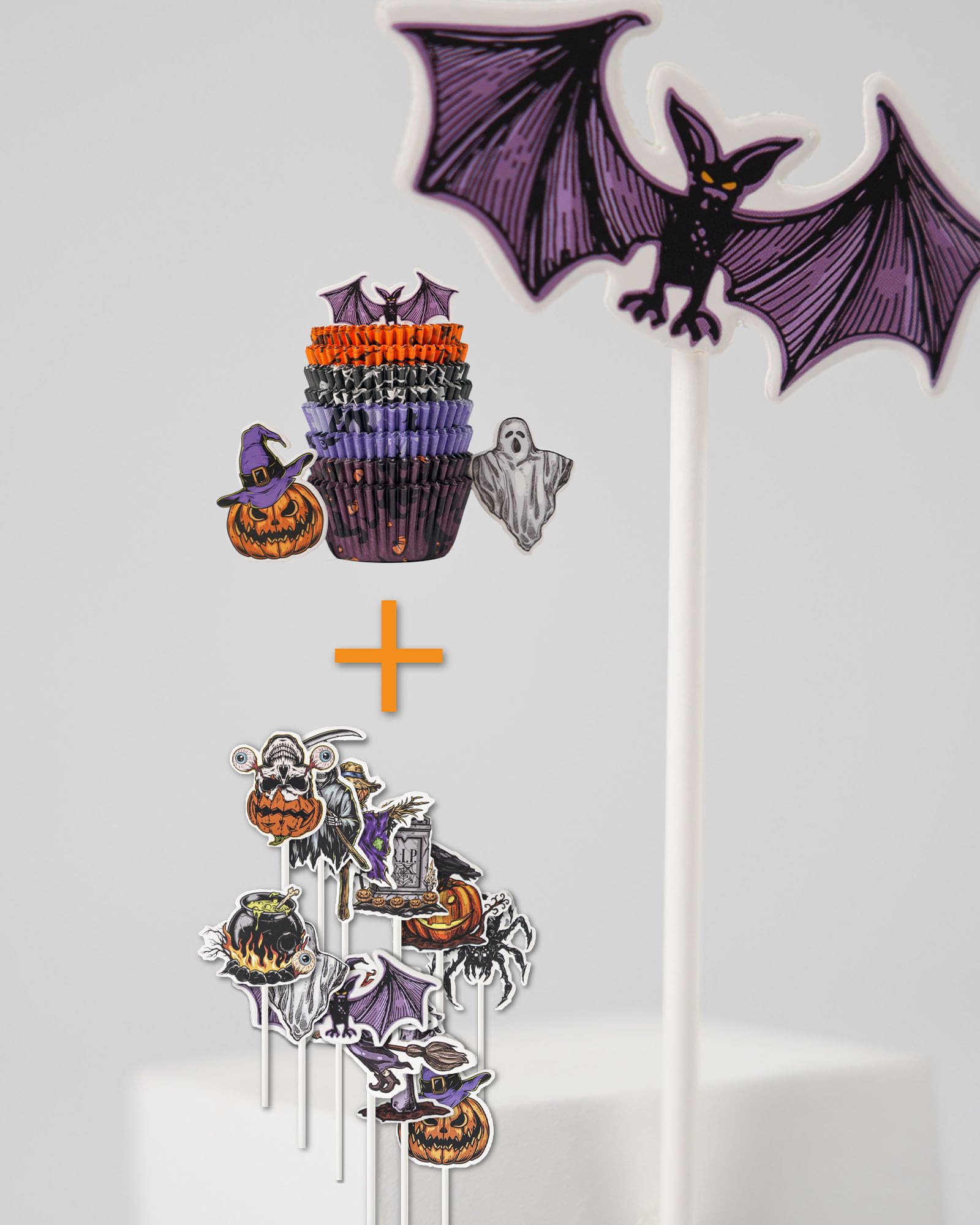 Bake Choice 200 Pcs Cupcake Liners with 12 Pcs Toppers, Standard Size Cupcake Liners for Baking, Halloween Baking Supplies