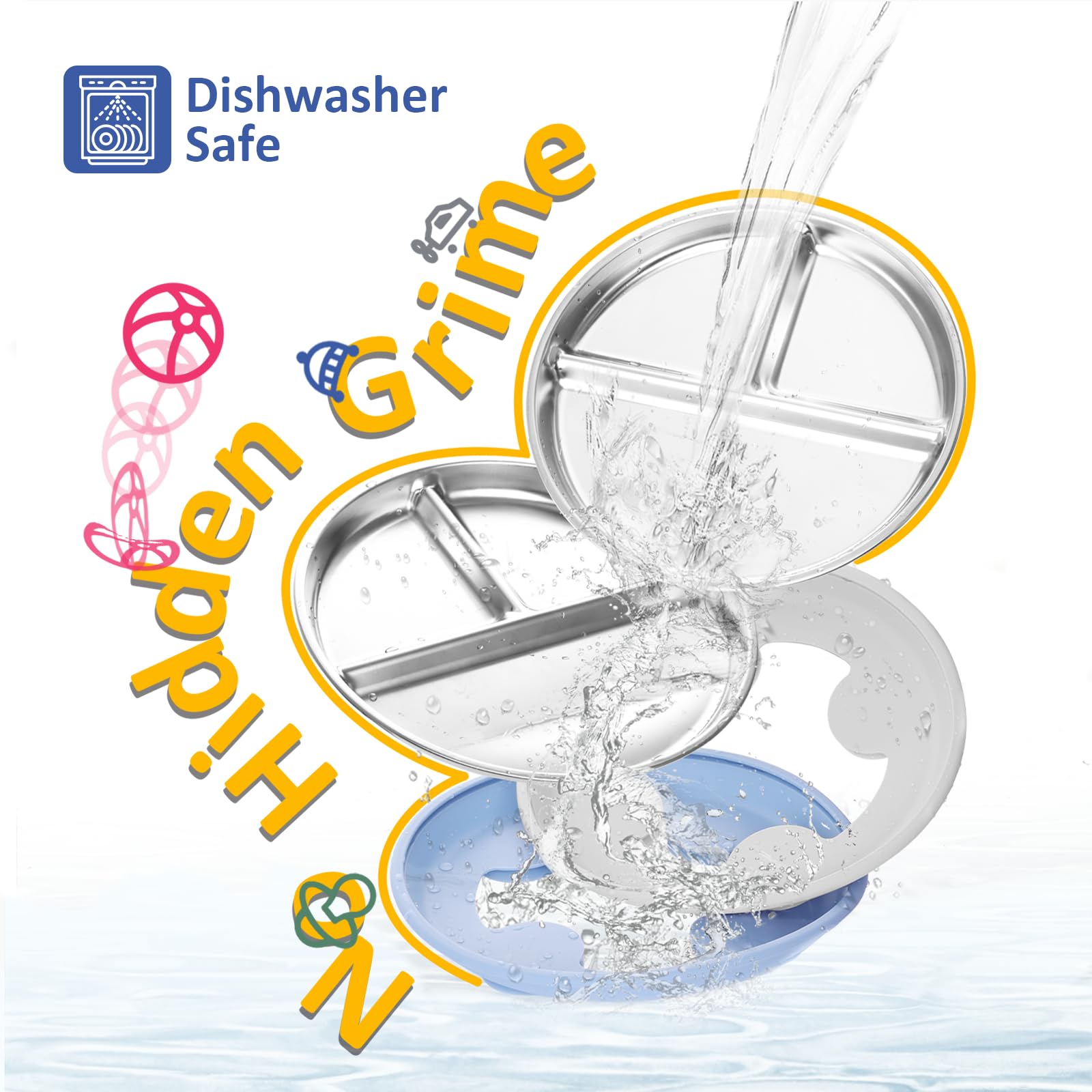• Hassle-Free Cleaning: Resistant to food stains like carrots, the smooth stainless steel surface is easy to clean. Both the toddler plate and silicone suction sleeve are dishwasher-safe, making cleanup quick and stress-free for busy parents