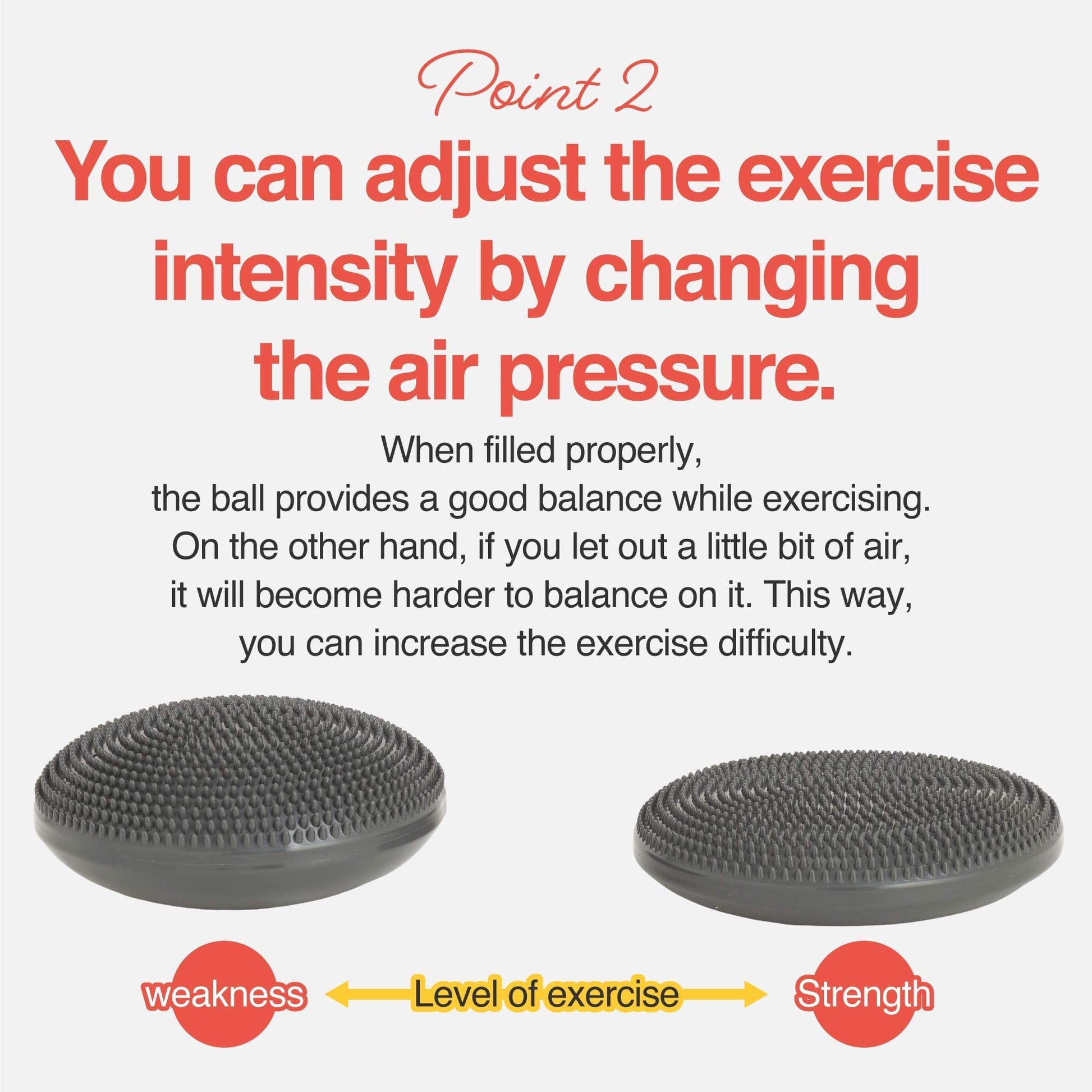 Details: Primasole's balance Wobble disc has a 550lb load limit. You can use it without any concerns. It is suitable for a variety of exercises including when on a diet, improving posture, or torso training. You can adjust the intensity of the exercise from the air pressure. It is bumpy on one side, and it can be used how you like for different purposes.