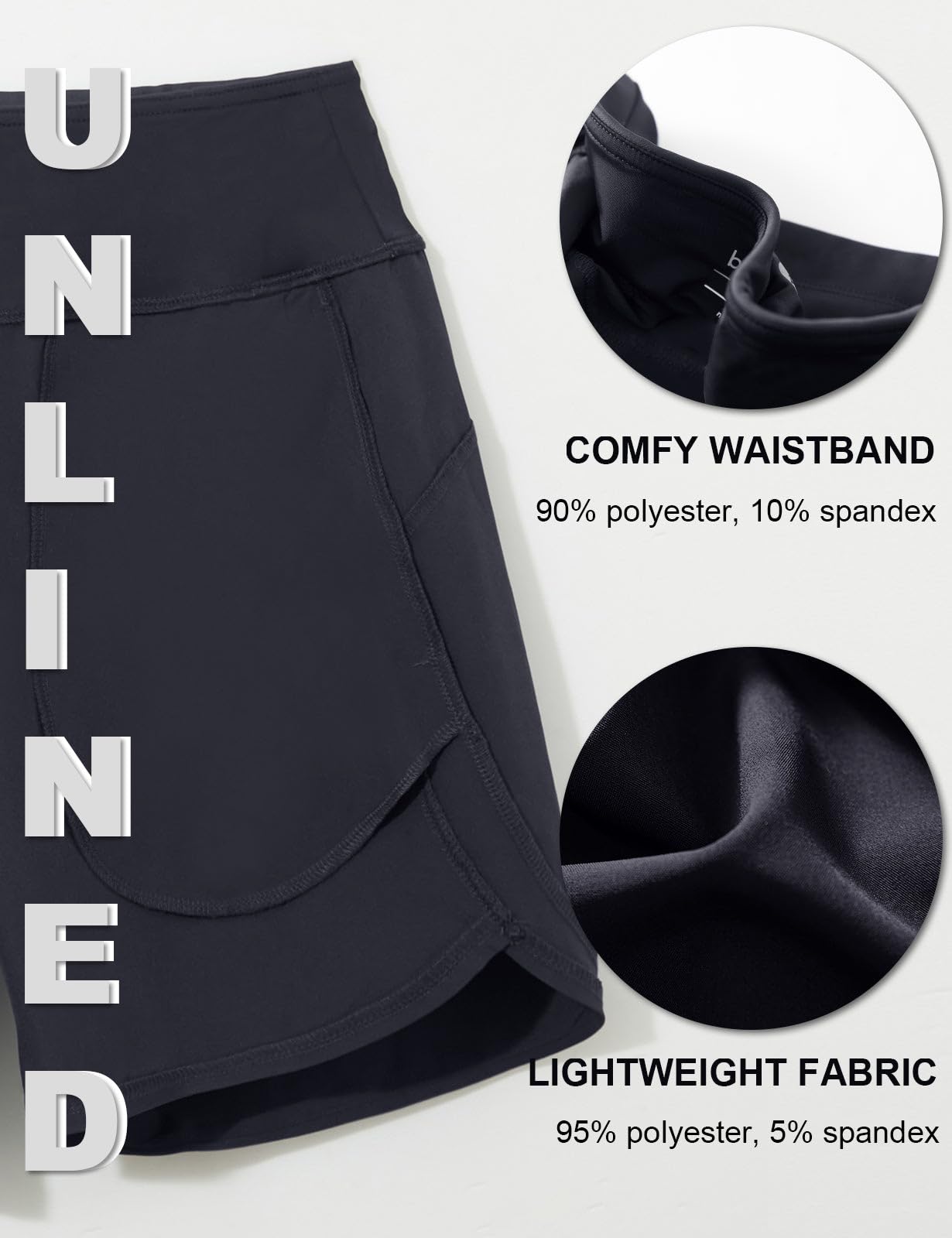 baleaf Women's 5" Workout Shorts Athletic Running Shorts High Waisted with Zipper Pocket Gym Quick Dry Hiking Sports Black S