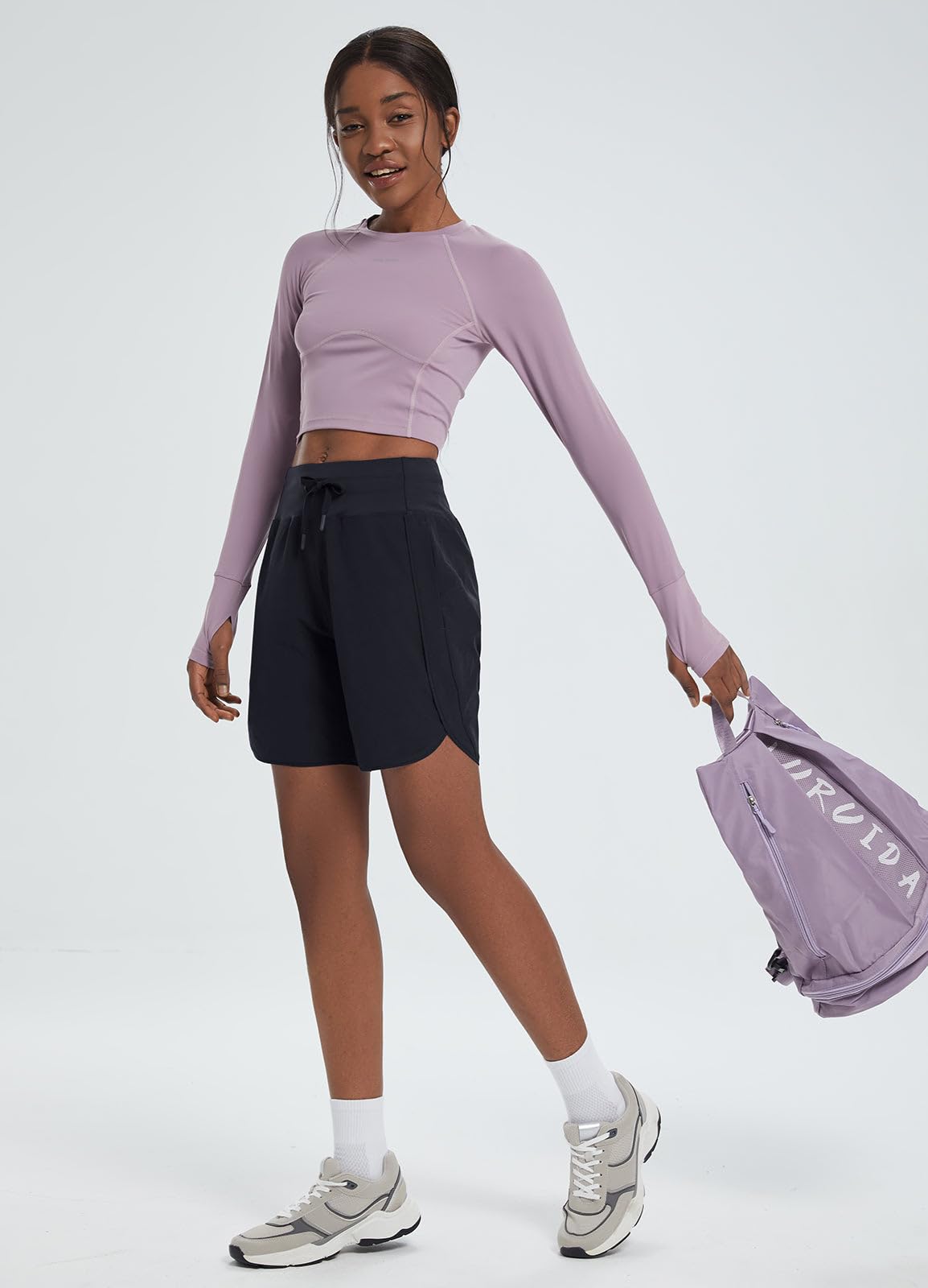 baleaf Women's 7" Long Running Shorts Athletic Workout Gym Quick Dry Hiking Shorts High Waisted Zipper Pocket Black L