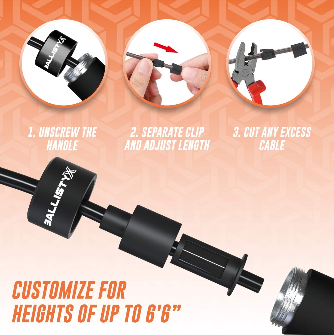 • BUILT AS TOUGH AS YOU ARE – Designed with serious athletes in mind, the Ballistyx exercise jump rope provides lasting durability. Its flexible speed and power cables won’t kink, splinter, or snap, and full stainless steel handles never tap out.