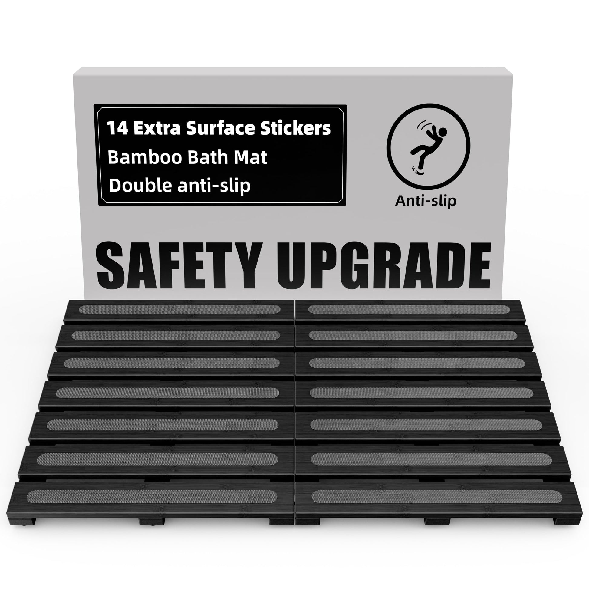 • 【Upgraded Dual Anti-Slip Design】Our bamboo bath mat is designed with Dual slip resistance, including eight silicone anti-slip feet and sixteen additional anti-slip stickers that are exclusive to us. It has a stable grip to minimize the risk of slipping. Provides a reassuring bathing experience