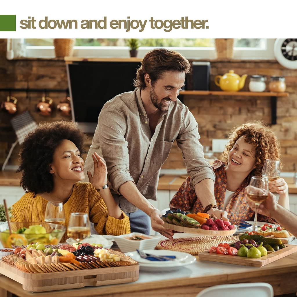 • Exquisite Craftsmanship - Crafted from premium bamboo, our fruit charcuterie board is durable and will not easily crack or warp. Make this bamboo tray part of your culinary traditions for many years!
