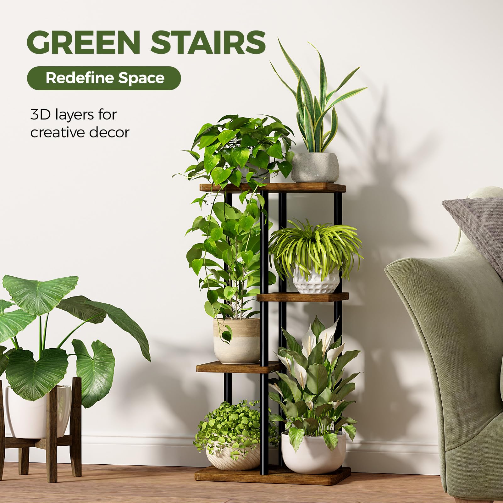 Bamworld Plant Stand Indoor, Corner 4 Tier Metal Plant Shelf for Multiple Plants, Tiered Flower Pot Stands for Patio Garden Balcony Living Room Bedroom, Brown