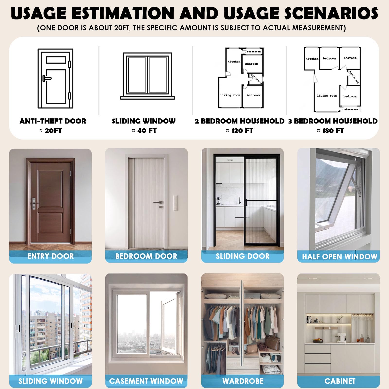 • 7 Protections for Doors & Windows : 1. Windproof/2. Soundproofing/3. Dust proof/4. Waterproof/5. Insect proof 6. Light proof/7. Noise reduction. Fill the gaps between your doors and windows in all directions, always taking care of your and your family's life and health, and no longer worrying about the above troubles