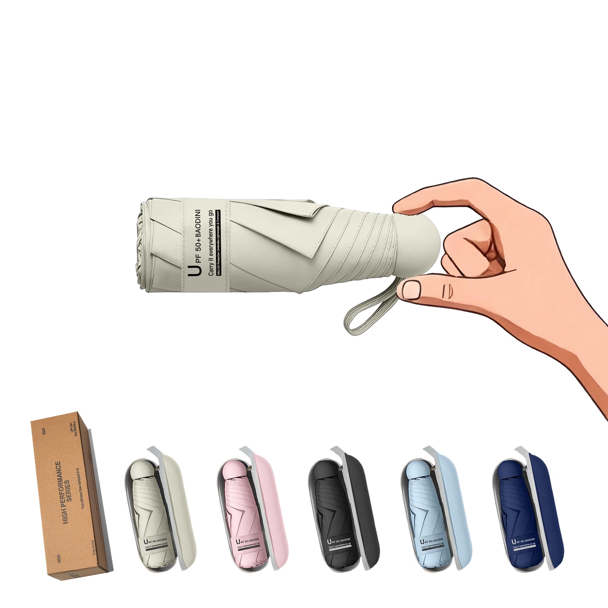 BAODINI Travel Essentials Mini Umbrella for Purse With Case Small Compact UV Sun Protection Lightweight Tiny Pocket Manual Open Close Umbrella for Women Kids and Men Fit Purse Backpack