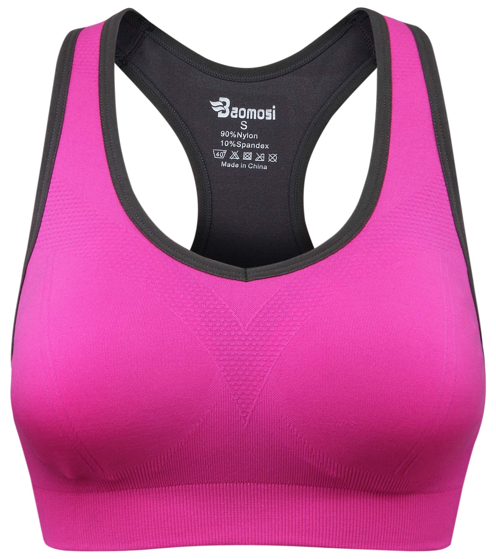 BAOMOSI Sports Bra Feature: High-support Support Pullover style Performance & Fabric Perfect for spinning, kickboxing and circuit training Nylon performance fabric with 4-way stretch Sleek,stretchy fabric is wicking,breathable Lightweight,super soft,smooth,stretchy Removable cups for extra coverage Racerback gives maximum freedom of movement