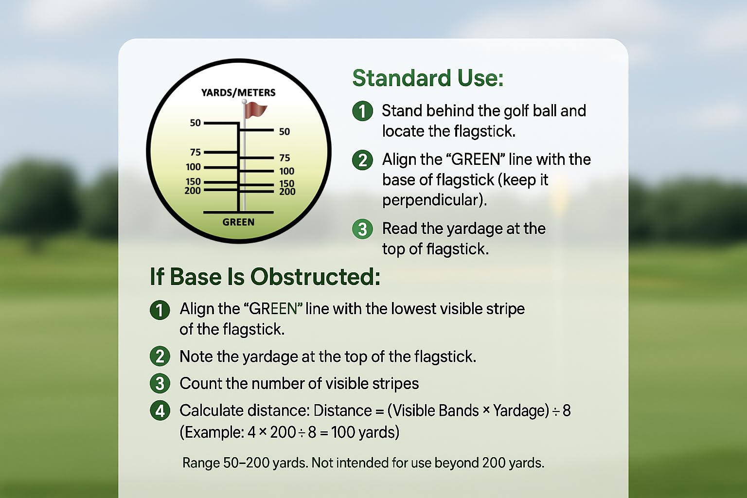 • With built-in internal distance reticle, the scope can be used to estimate the range between 50-200 yards. Align the reticle with the flag to estimate the range.