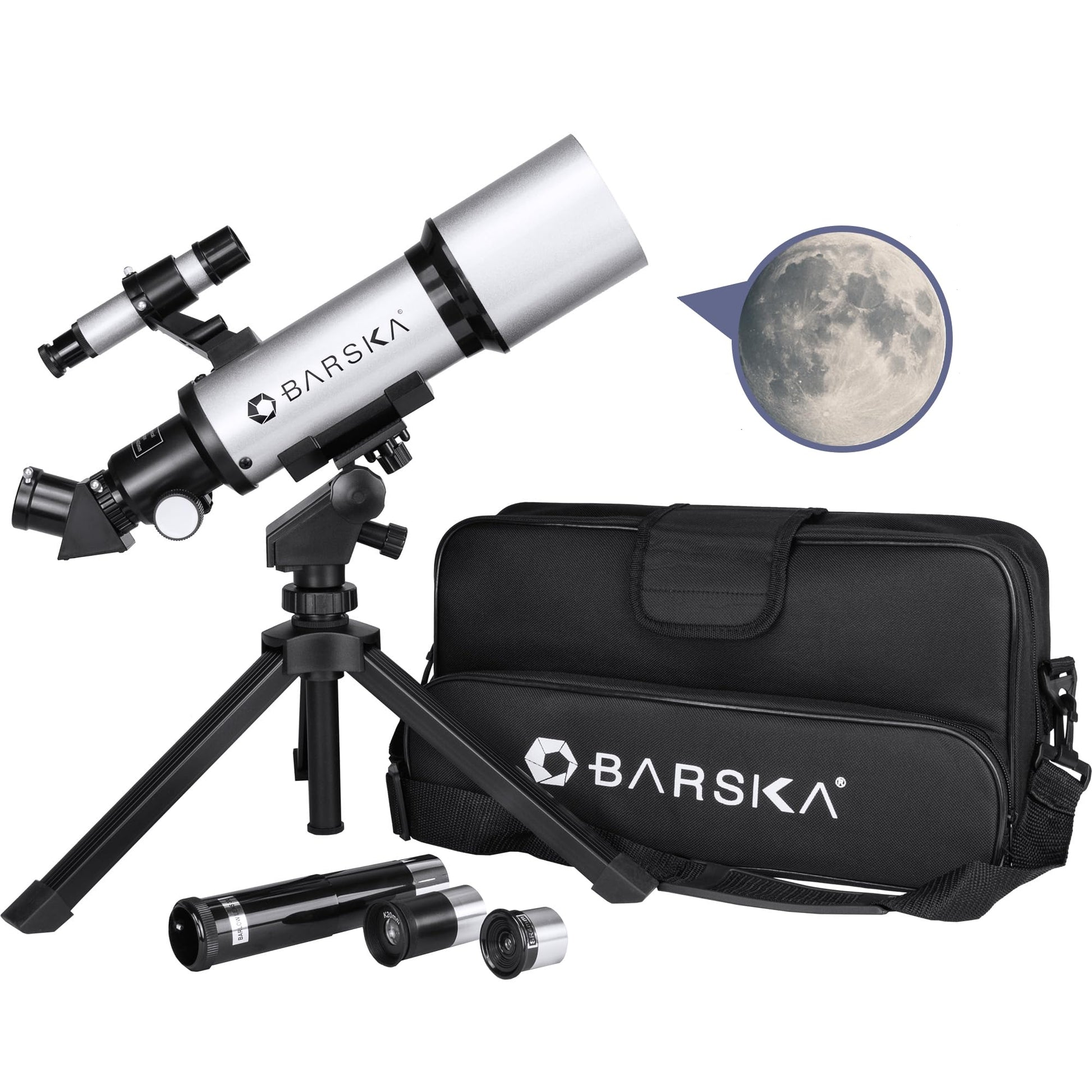 Barska Starwatcher Astronomical Refractor Telescope 300x Magnification for Beginners & Kids with Barlow Lens, 2 Interchangeable Eyepieces, Finder Scope, Table Top Tripod