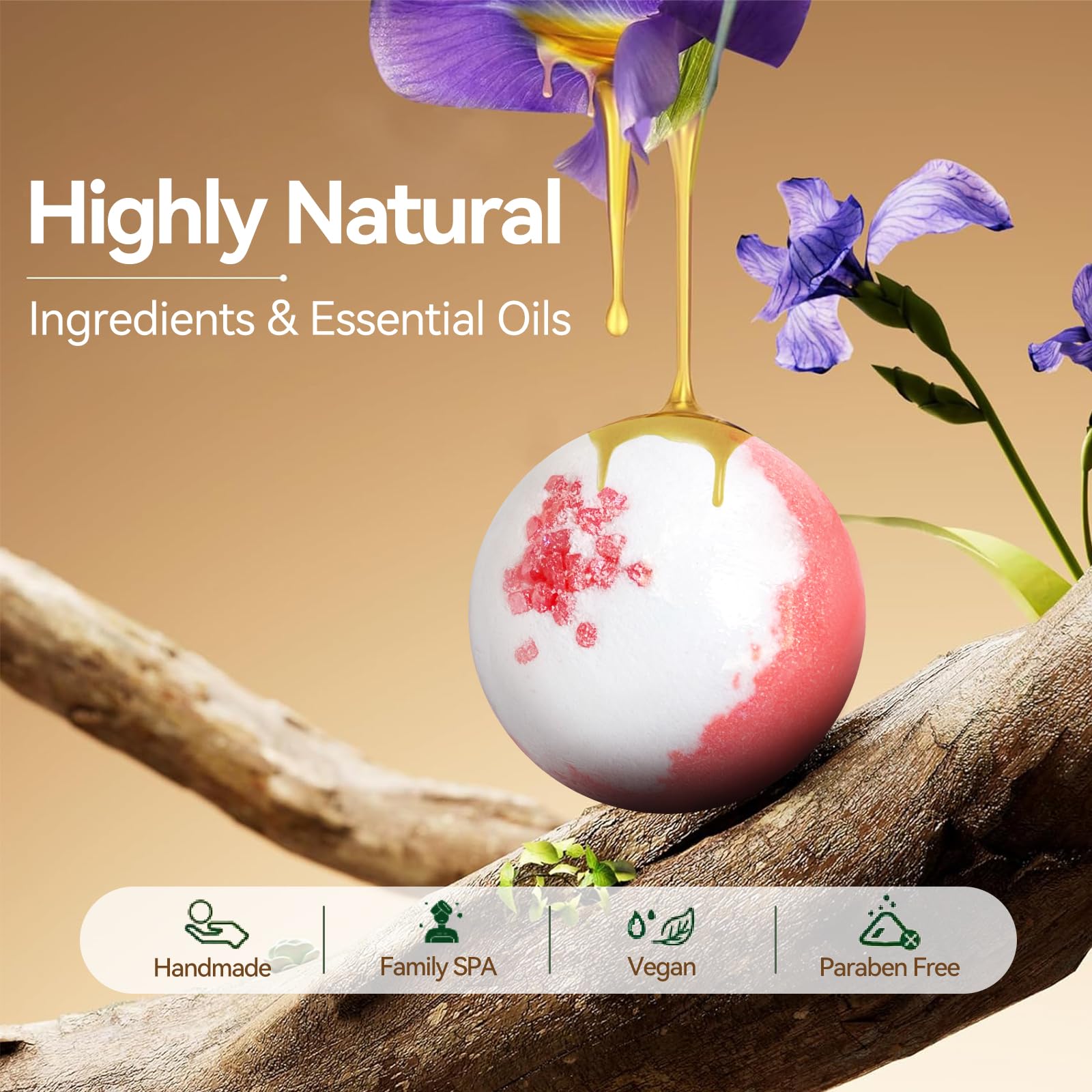 • 【Natural Ingredients】Each bath ball is crafted with essential oils, shea butter, Epsom salt, cocoa butter, and citric acid. Our moisturizing bath bombs won't stain your tub! They're also cruelty-free and humane.