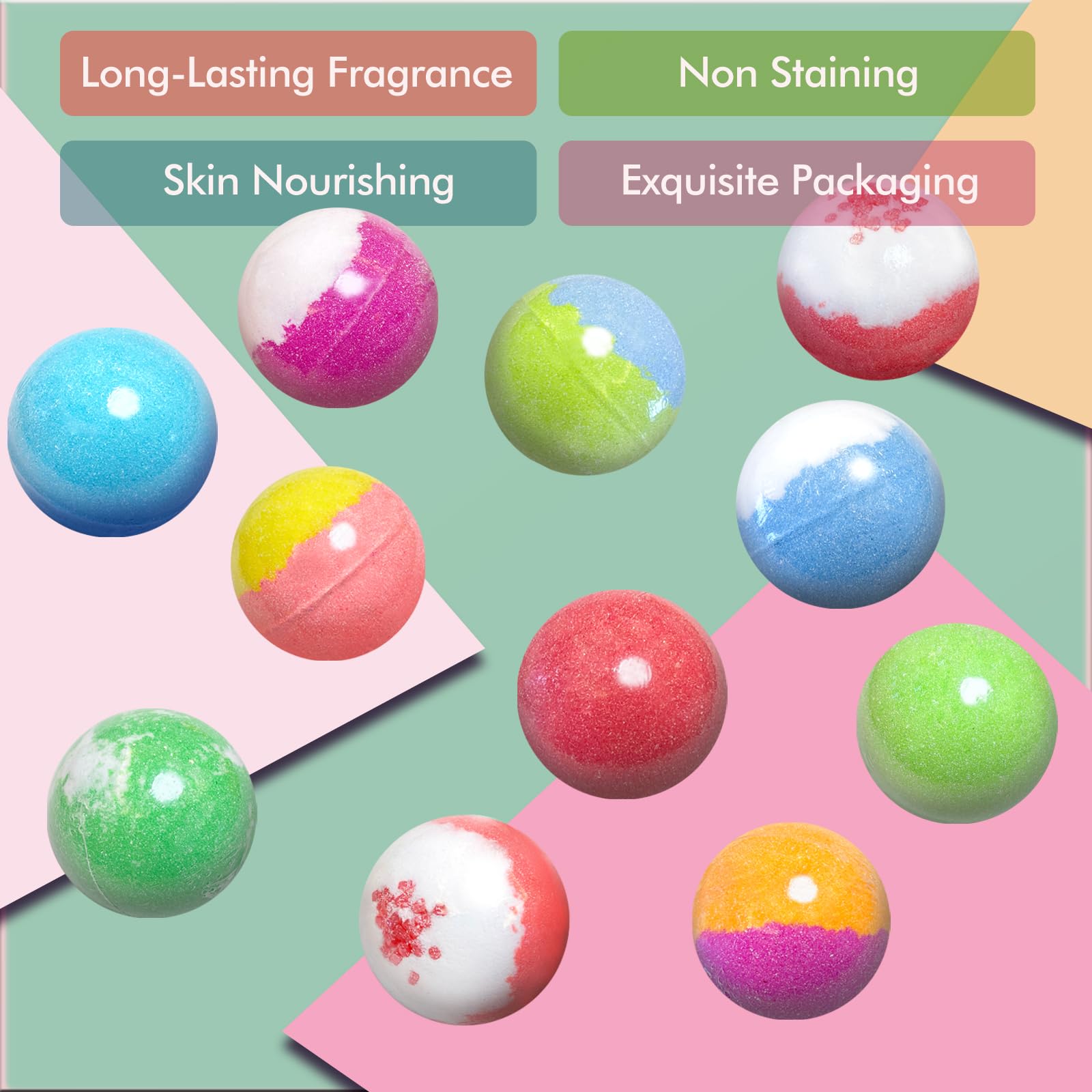 • 【Wonderful Fizz Effect】Each bath bomb features vibrant colors, creating an amazing whirlpool of color in the water to provide you a visual feast. The bubble bath bombs are perfect for bubble baths and spa experiences at home.