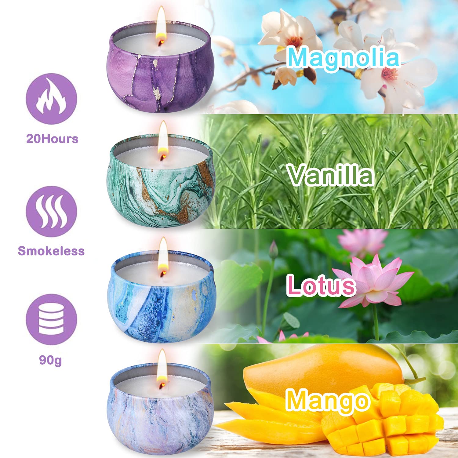 • 【Bath Bombs & Scented Candles】- 5 Color Bath Bombs: Lavender, ocean, rose, jasmine, osmanthus; 4 Scented Candles: Vanilla, mango, magnolia, lotus.