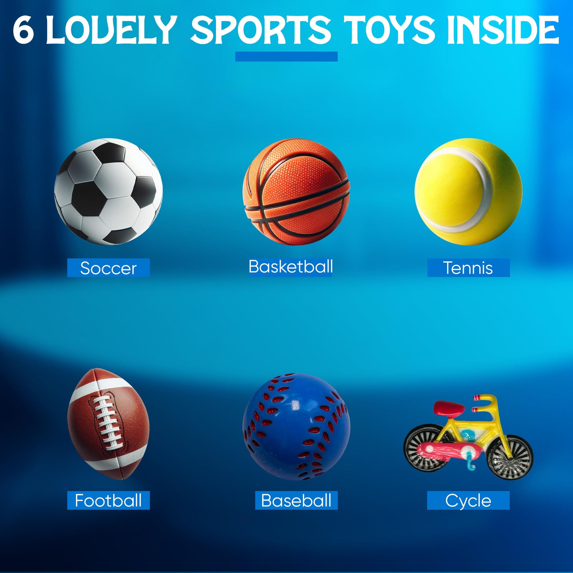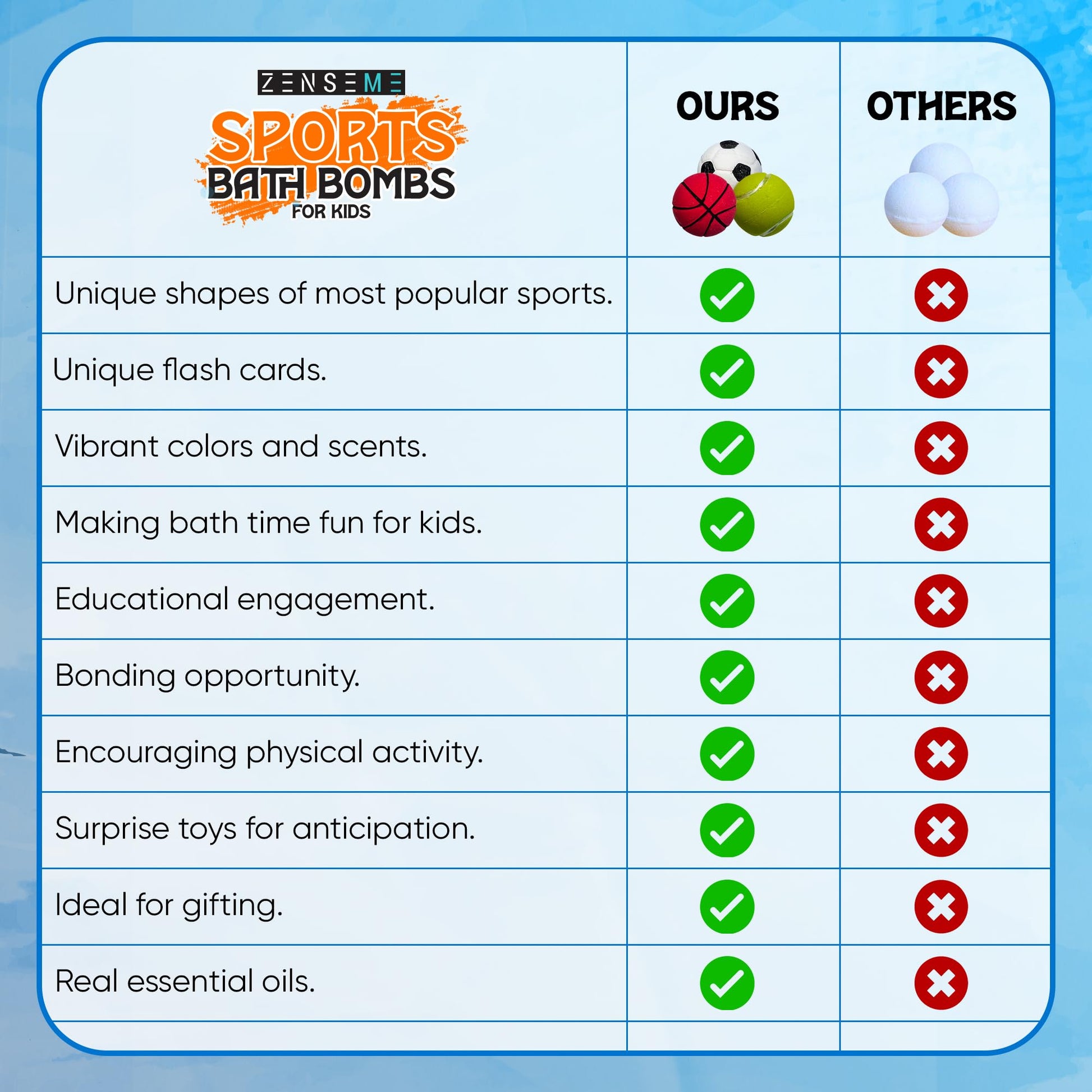 Bath Bombs with Toys Inside W/Educational Flash Cards - Bath Bombs for Kids - 2.5 oz Gift Set of 6 Scented Organic Handmade with Natural Essential Oils - Sports Surprise Inside by Zenseme