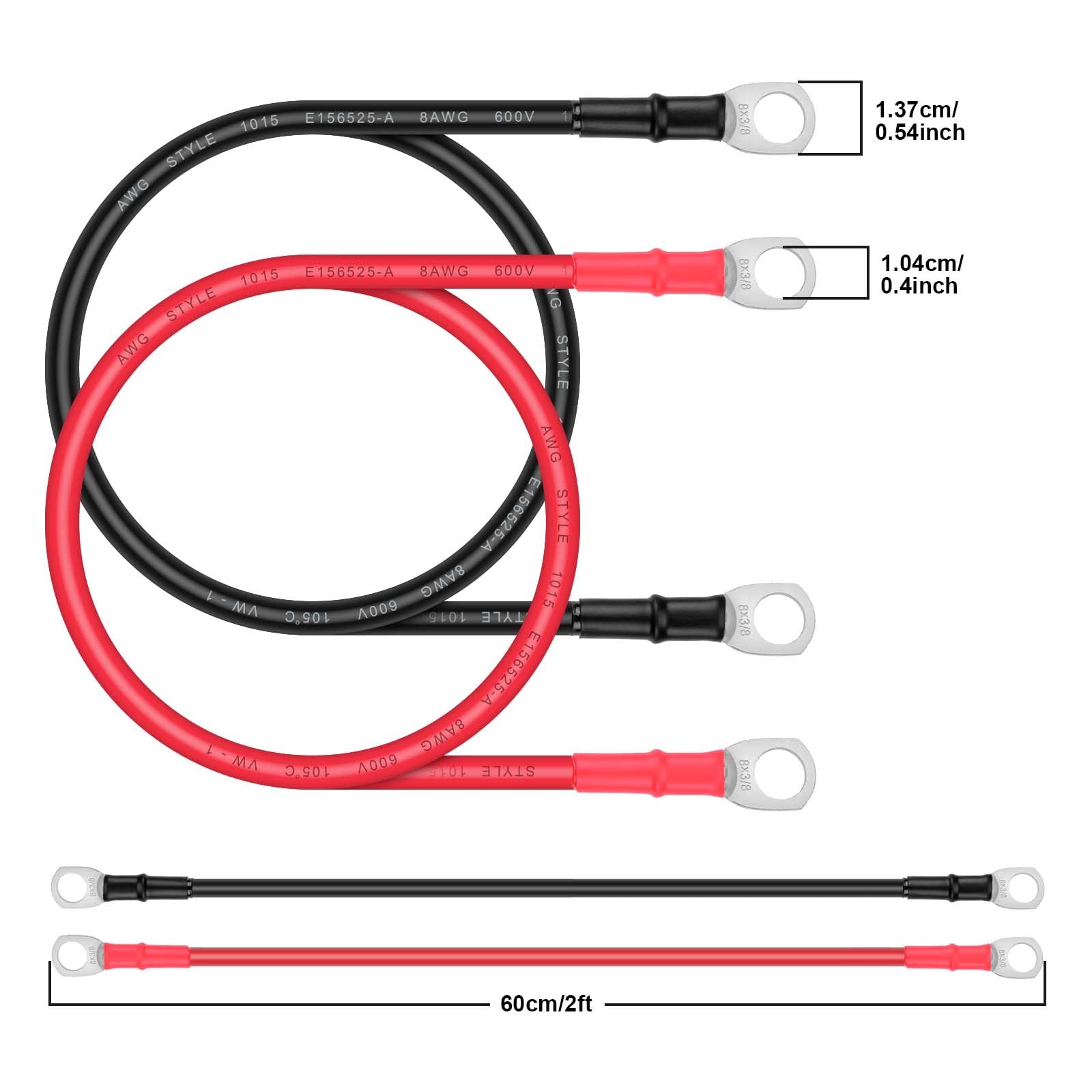 Battery Cable - iGreely 8 AWG 8 Gauge Wire Made with Tinned Copper Wire Battery Power Inverter Cables with Terminals for Solar Panel Trolling Motor Automotive Motorcycle RV Marine Boat 2ft/60cm