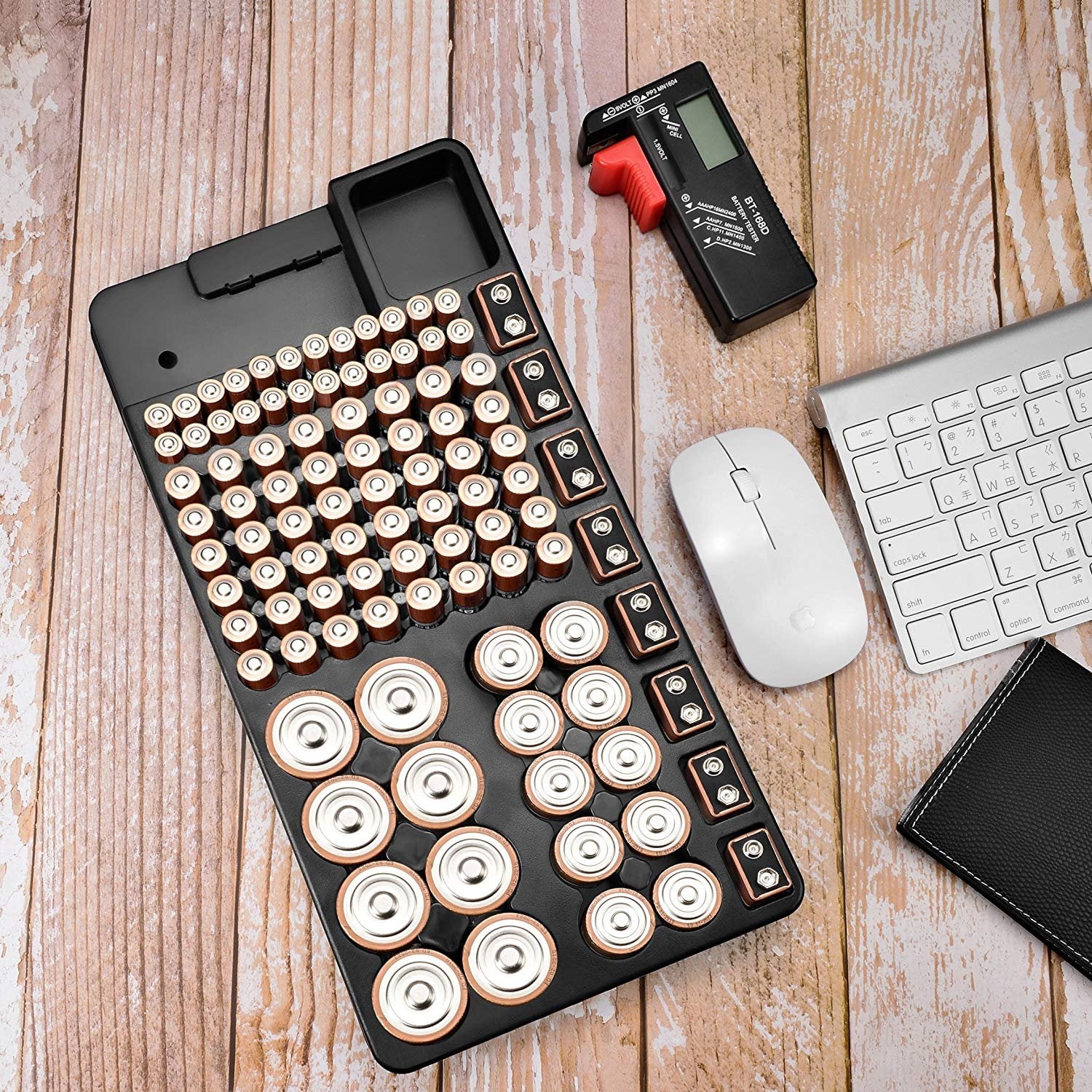 • BATTERY ORGANIZER 110 HOLDER : Large capacity battery organizer storage case can hold more batteries of different sizes. 48pcs AA, 24pcs AAA, 8pcs D battery and 10pcs C battery, 8pcs 9V battery and 12 button cell batteries.