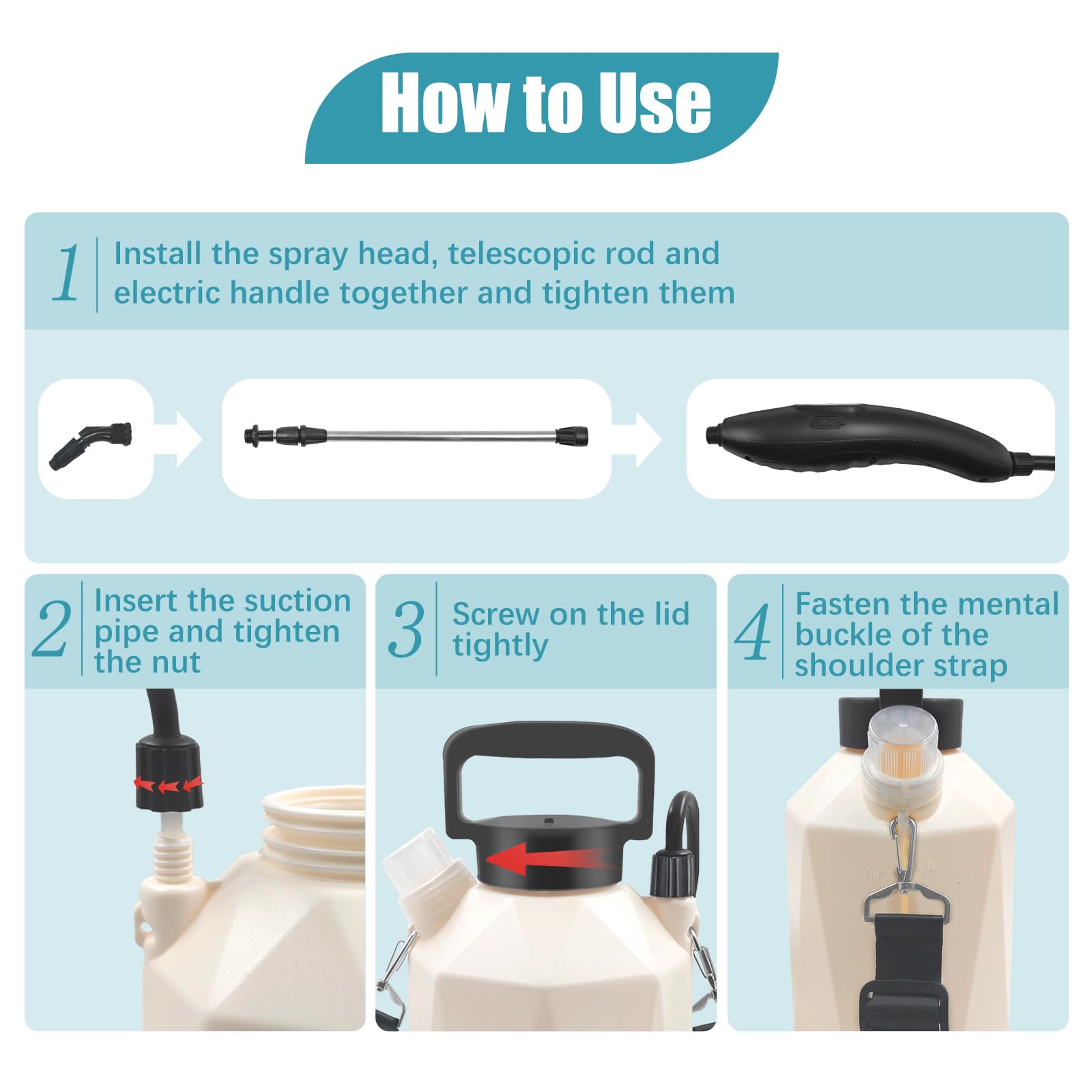 • Effortless Gardening Mastery: The garden sprayer's handle ensures a comfortable grip and has an indicator light for real-time battery display. Its 2000mAh built-in battery provides 2.5-3 hours of spraying per charge. Bid farewell to the hand pain from using manual pump sprayers. With a gentle press, the automatic spraying starts, allowing you to enjoy a hassle-free gardening journey