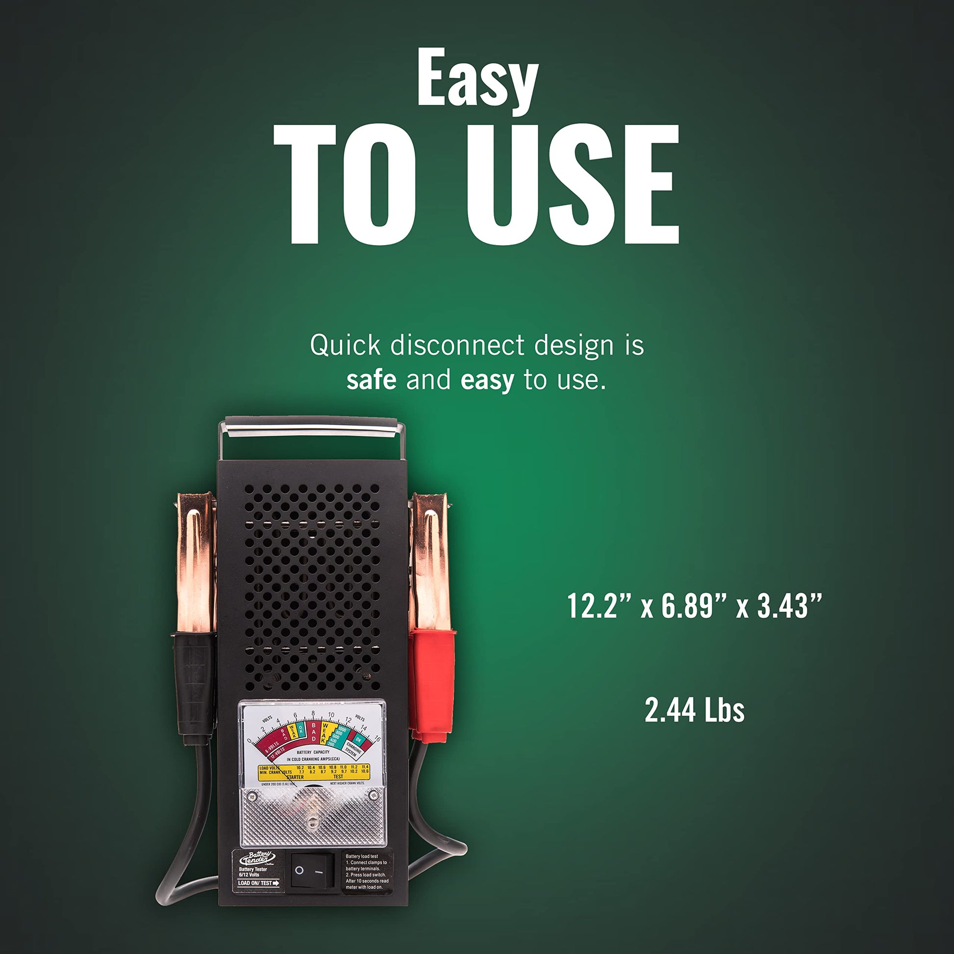 • COMPATIBLE RANGE: The Battery Tester is able to perform 100 AMP load tests for 12V batteries or a 50 AMP load tests for 6V batteries in Automotive, Marine, Power Sport, or RV vehicles.