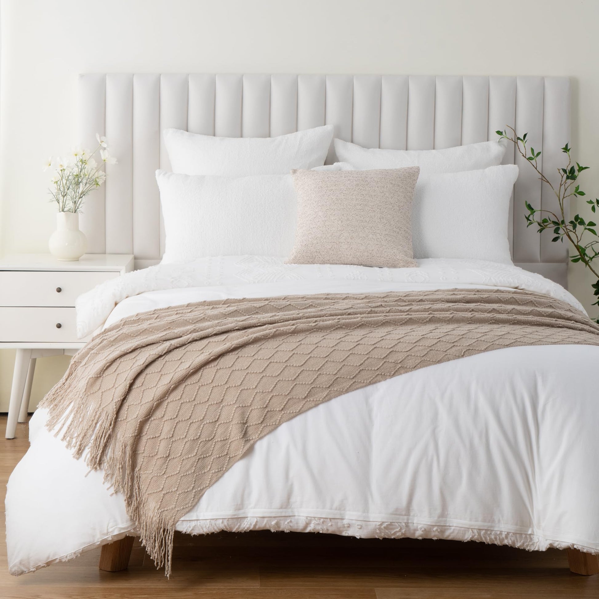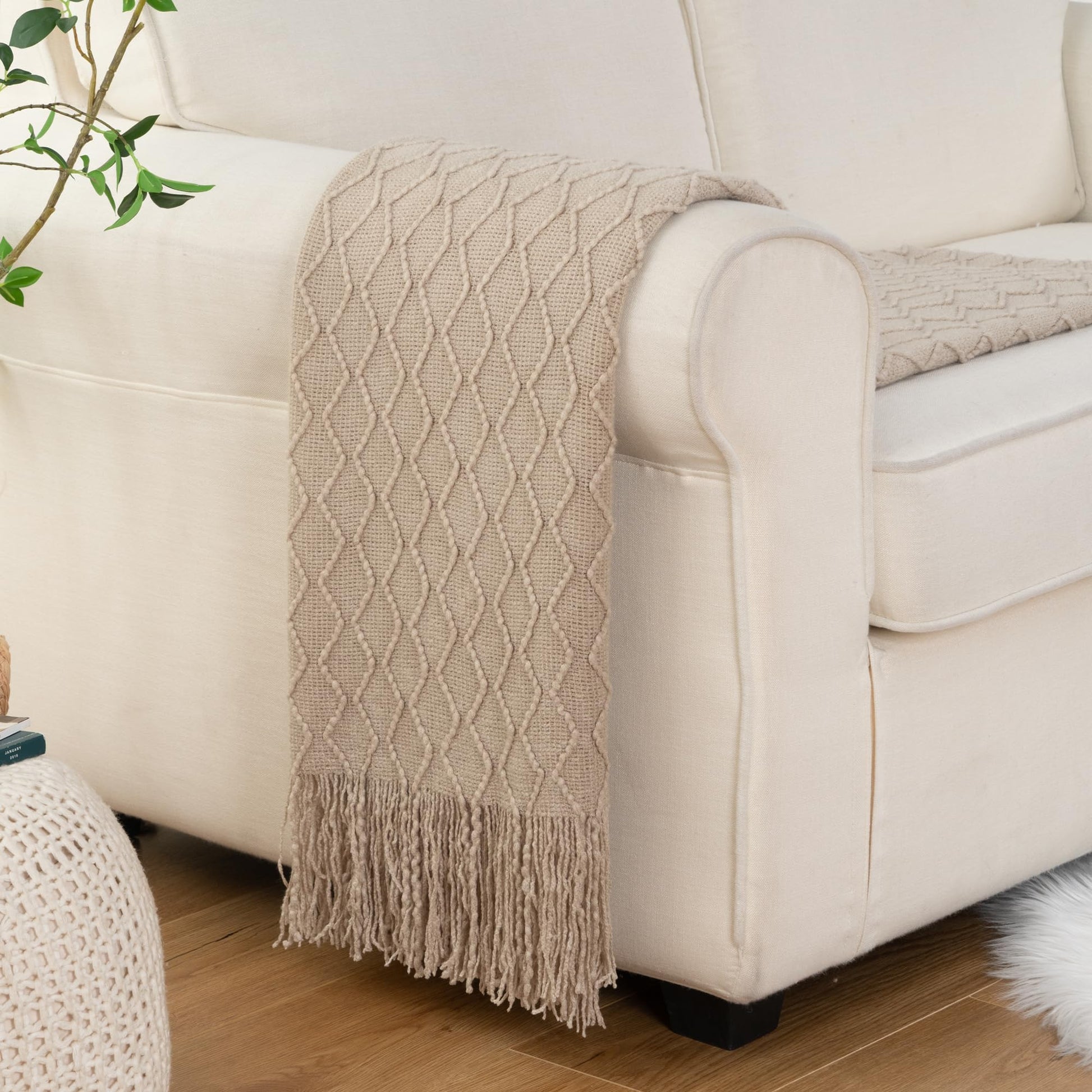 BATTILO HOME Khaki Throw Blankets for Couch, Taupe Lightweight Decorative Blankets and Throws, Boho Warm Knit Blanket for Men and Women, 50"x60"