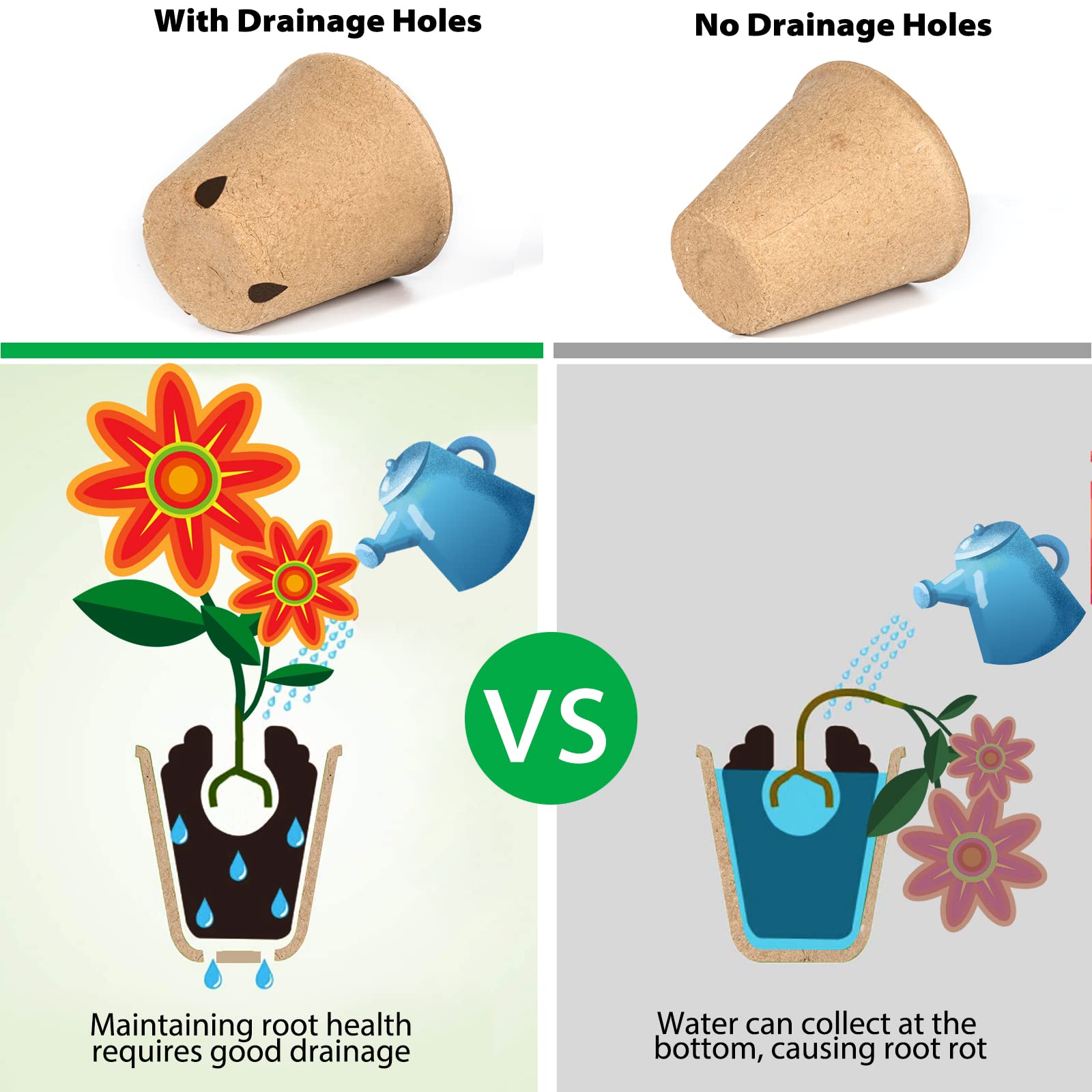 • 【Seeding Pots with Drainage Holes】Plant starter peat pots will not absorb water from the soil, so using these requires more water, but waterlogged soil is bad for seed. Pulp pots offering superior drainage and moisture retention, ensure the health of plants