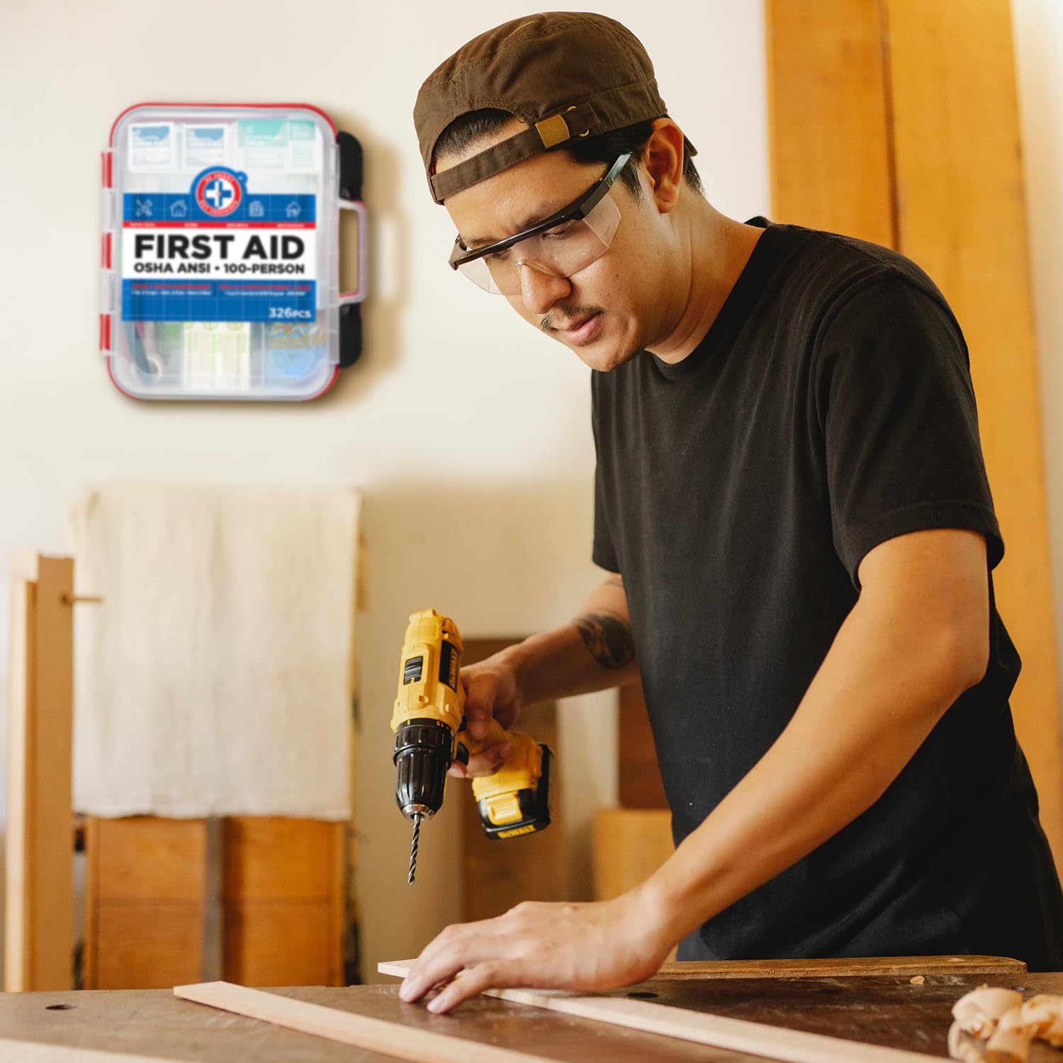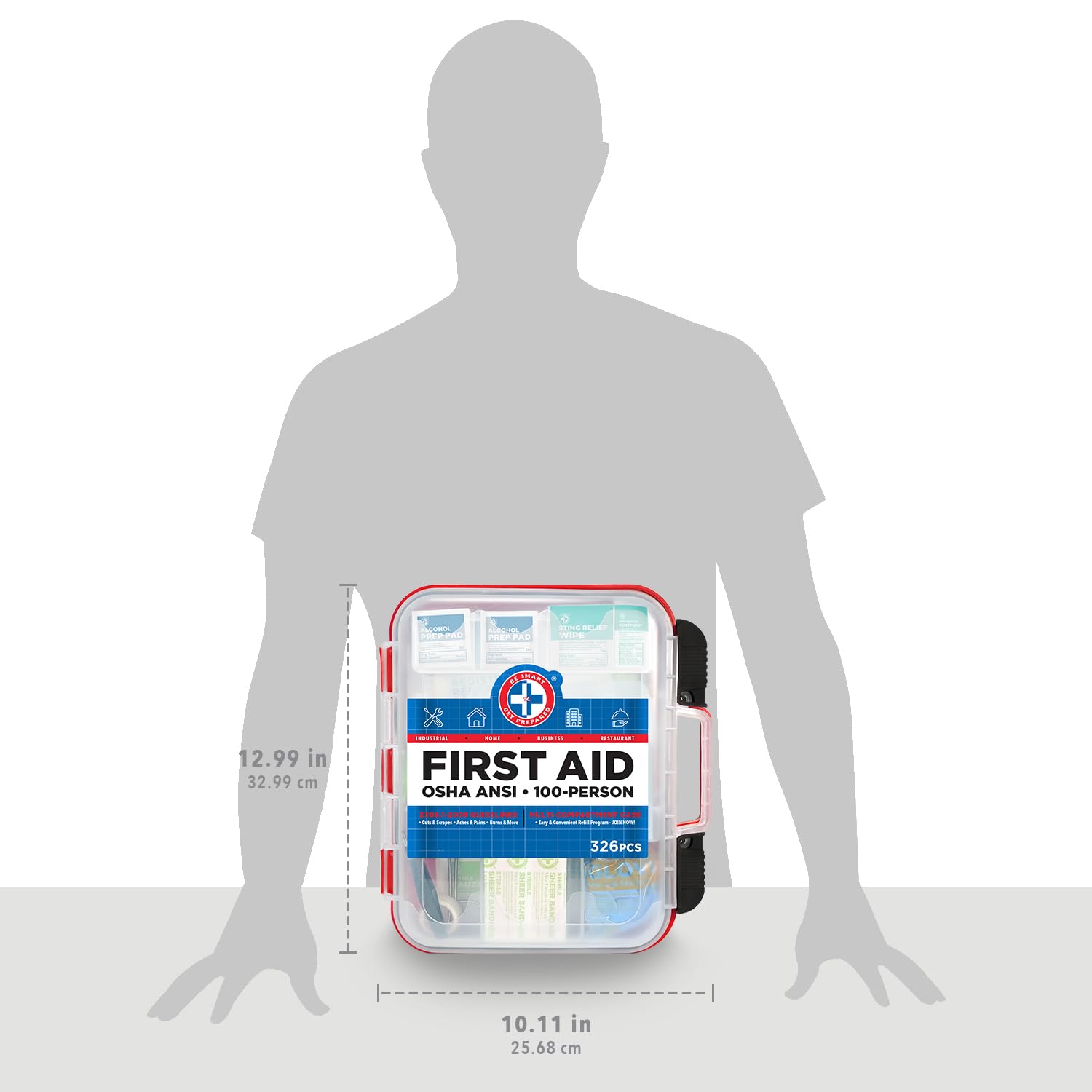 Be Smart Get Prepared First Aid Kit Hard Red Case 326 Pieces Exceeds OSHA and ANSI Guidelines 100 People - Office, Home, Car, School, Emergency, Survival, Camping, Hunting and Sports (20HBC01015REV3)