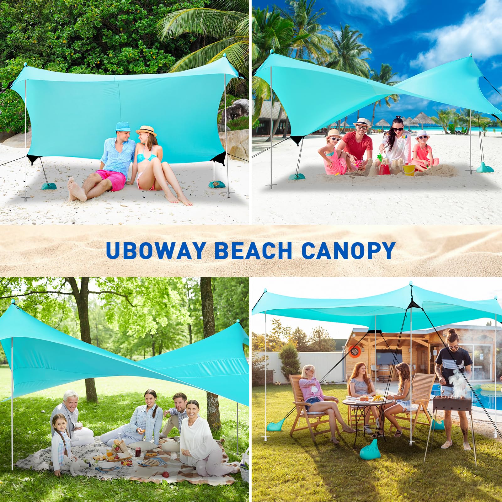 • 【Superior UV Protection】Crafted with highly elastic lycra fabric and offering UPF 50+ sun coverage. Uboway beach shade can reduce more than 96% of the harm from UV rays; It's a perfect family-friendly shelter, protects the skin from sunburn and glare during your outdoor fun time.