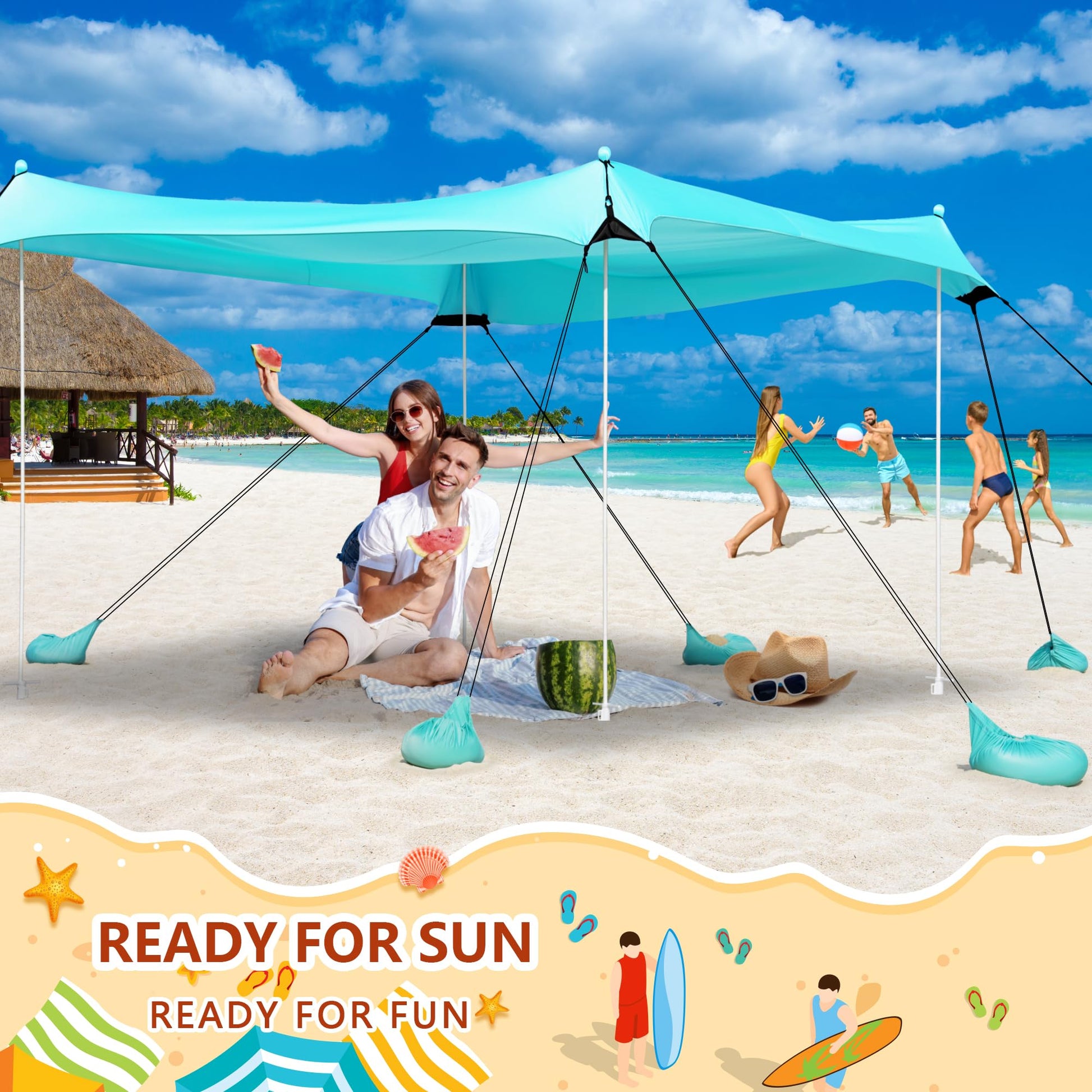 • 【Quick and Easy Setup with 2 Options】Our beach canopy is available in two installation methods: 4 sandbags or 8 sandbags for different wind resistance levels. Easy and quick install by a single person in 5 minutes. Note: Avoid tilting the poles into the sand as this can make the tent unstable, and rotating the pole will save you effort during installation or removal.