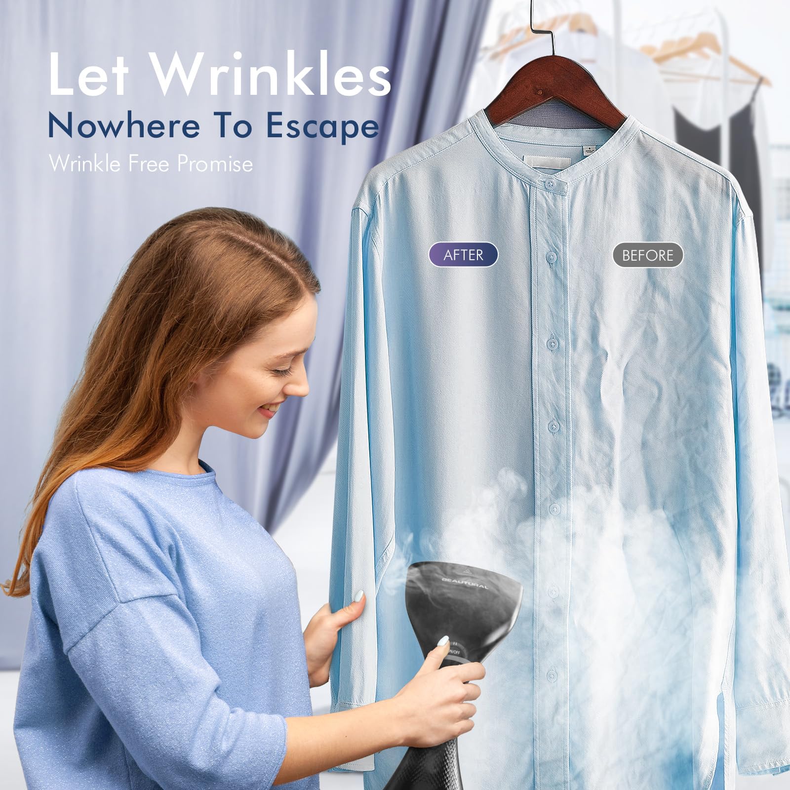 BEAUTURAL Steamer for Clothes, Upgraded 1800W High Power with Ceramic Heat-Up Plate, 2-Level Steam, 35 Seconds Preheating, 240ml Big Capacity, Removing Stubborn Wrinkles and Creases (Only for 120V)