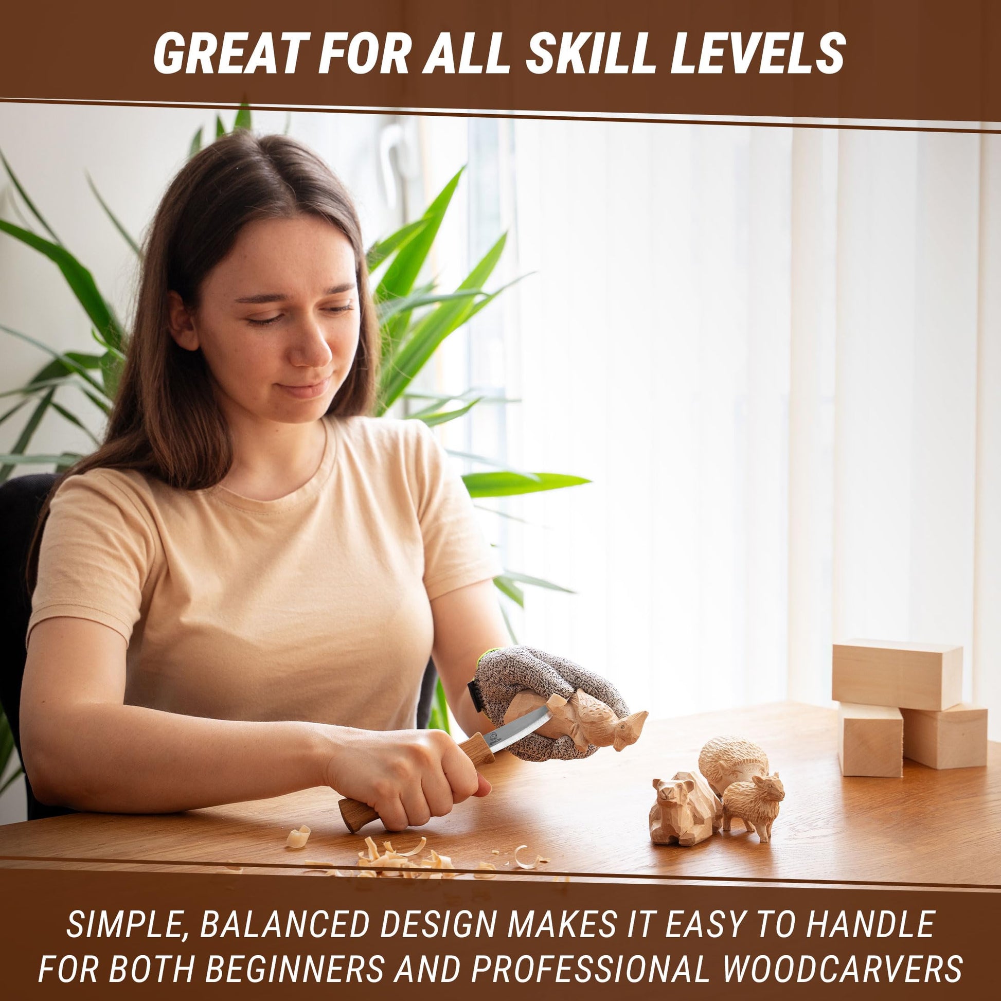 • Whittling Knife Ergonomic Handle: the shaft is made of hardwood oak and protected with natural linseed oil. The design of the handle allows to carve comfortably for a long time without hand fatigue.