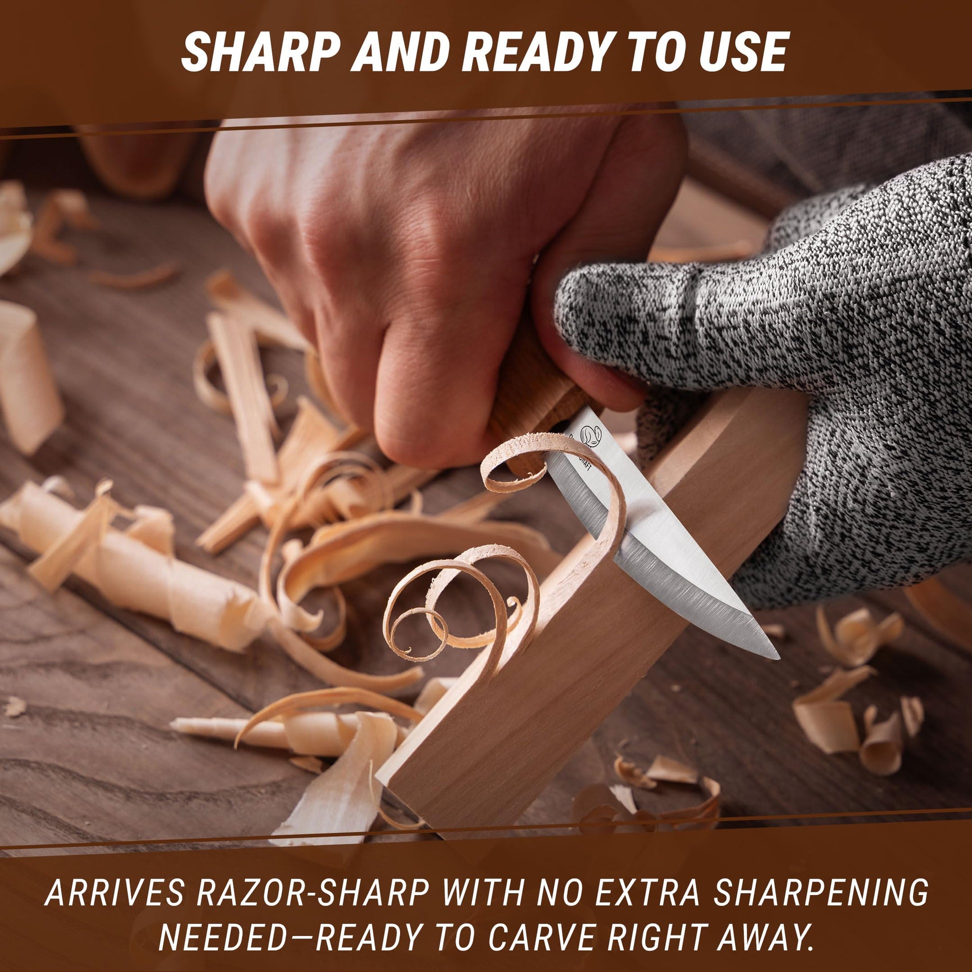 • Wood Carving Knife Cutting Edge: is very sharp, allows you to cut softwood. The cuts are very smooth. The cutting edge of sloyd knife is durable to also cut hardwoods such as oak or walnut.