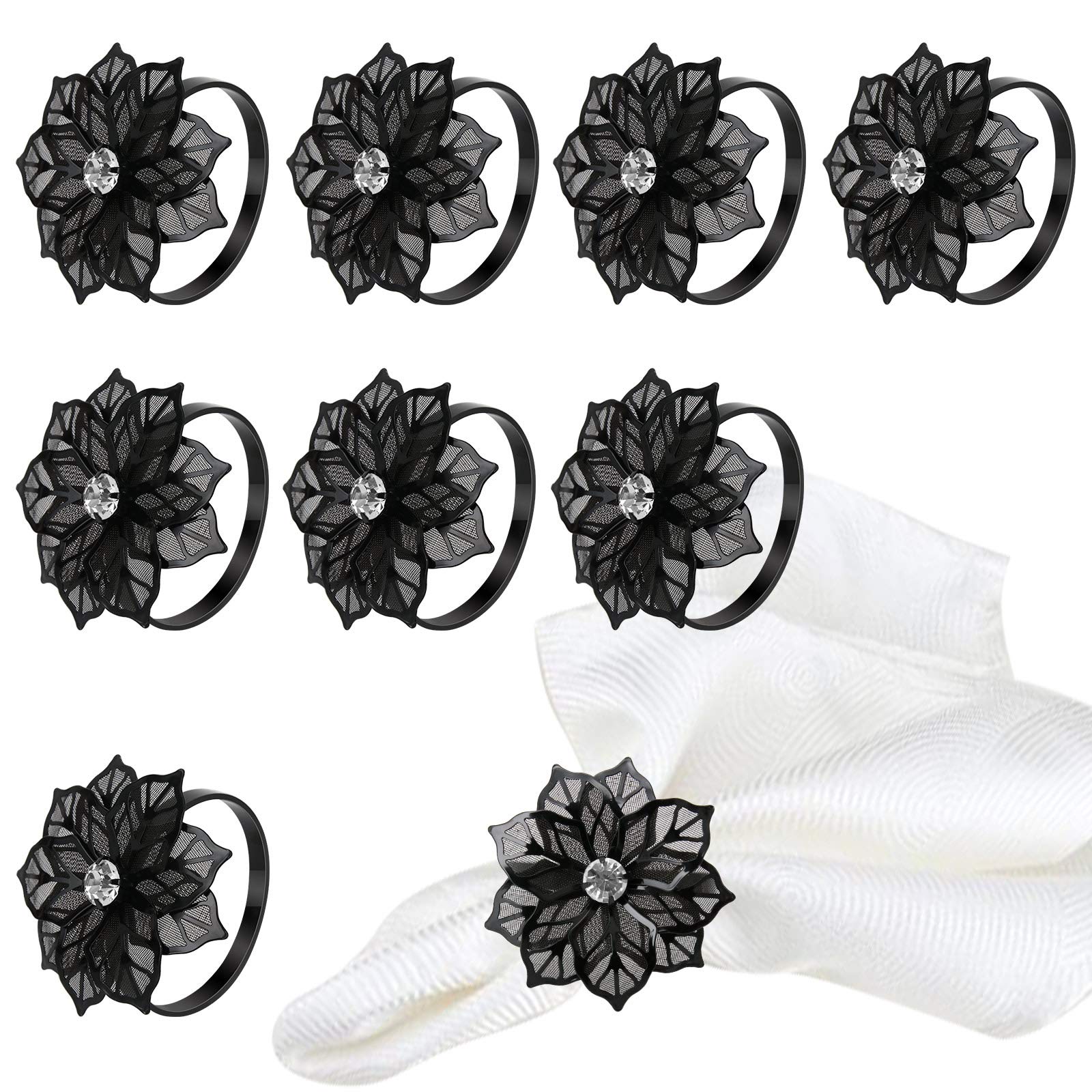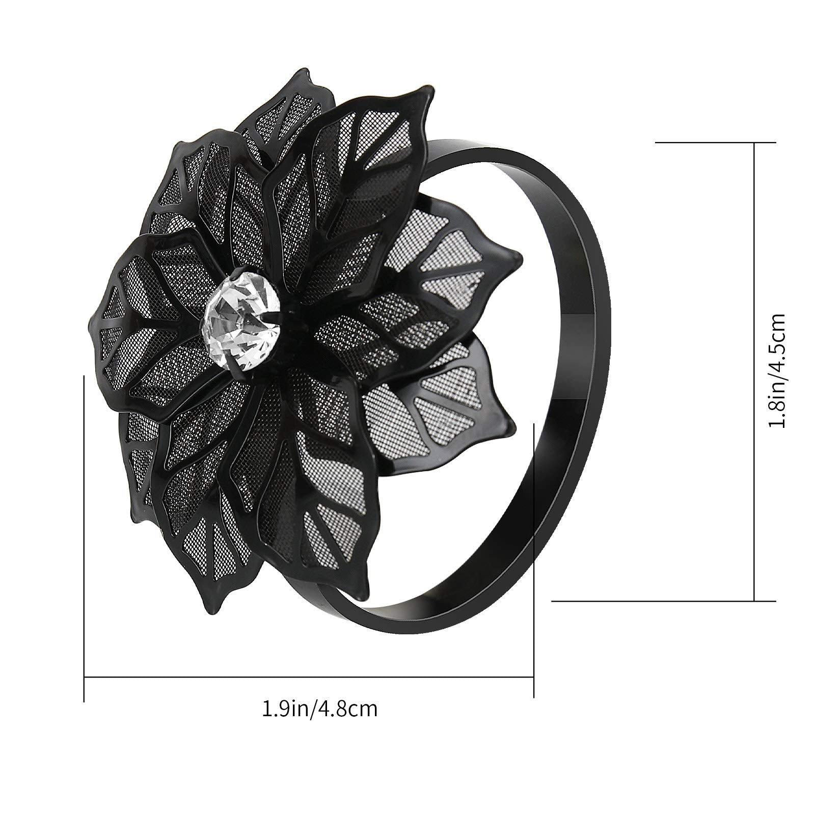 • Durable Material: These black napkin rings are made of quality alloy, the metal napkin rings are durable and reusable, hollow out flower and faux rhinestone,light and delicate. The shiny black finish is not easy to fade, can ornament your table and bring a lot of compliments from your customer.