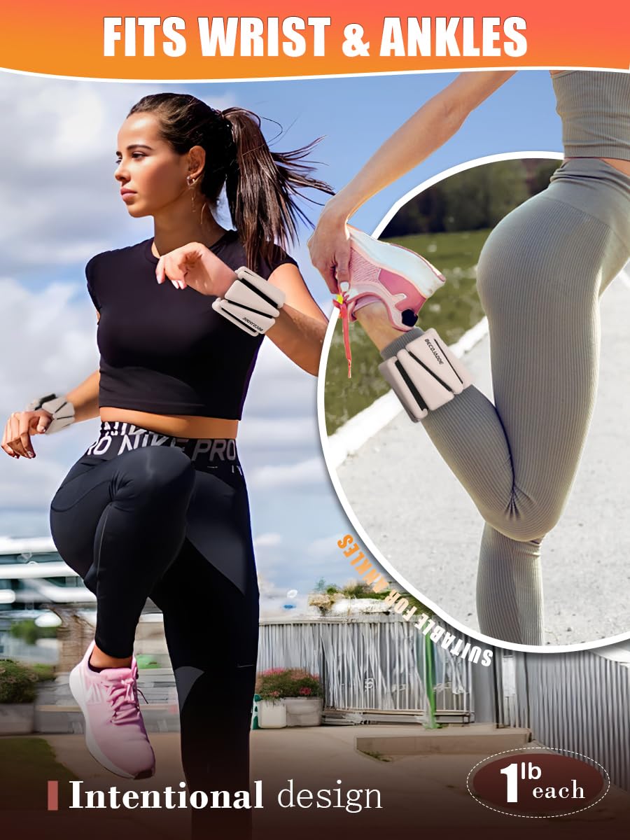 BECOJADDE Wrist Ankle Weights Adjustable Training Intensity for Strength Training Walking Running Yoga Pilates Jogging for Women Men Set of 2 (2 lb Each), Beige