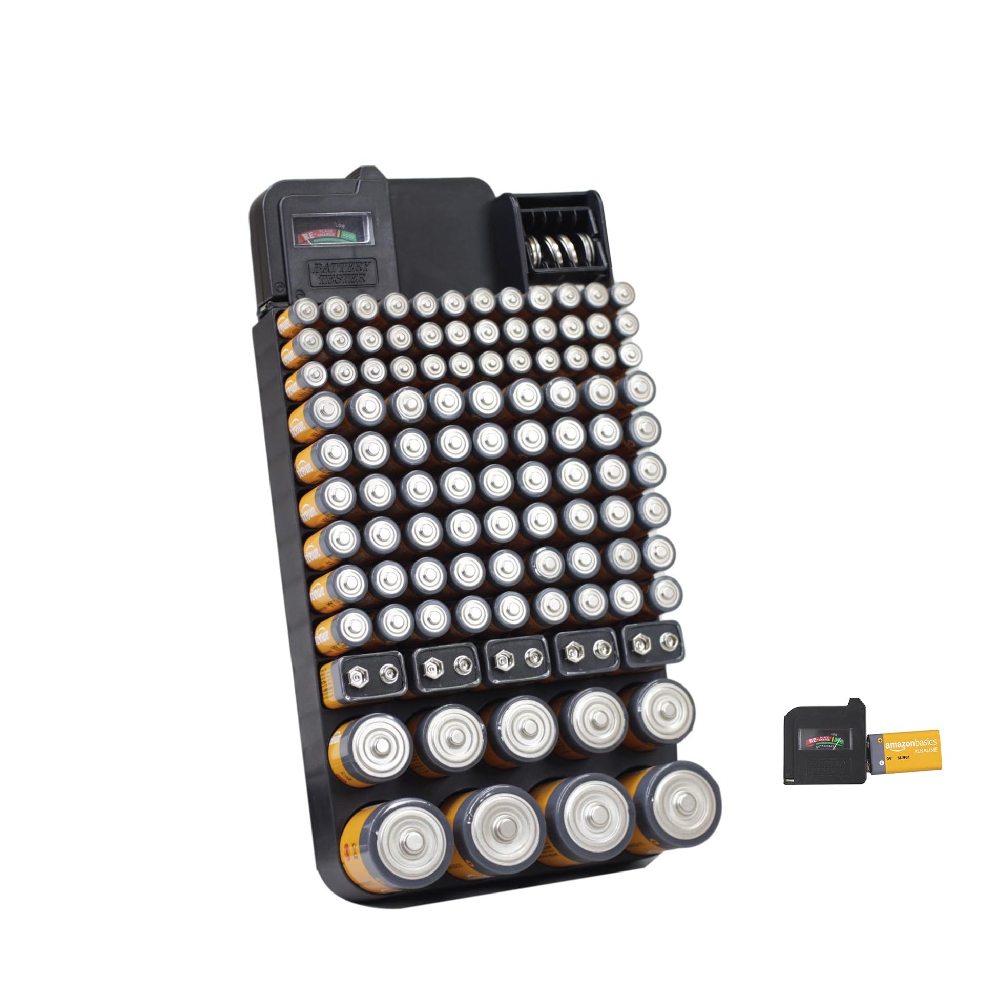 • ๐Ÿ”‹ REMOVABLE BATTERY TESTER โ€“ With battery storage box, you can test the power of your batteries with a removable checker that is powered by the battery.