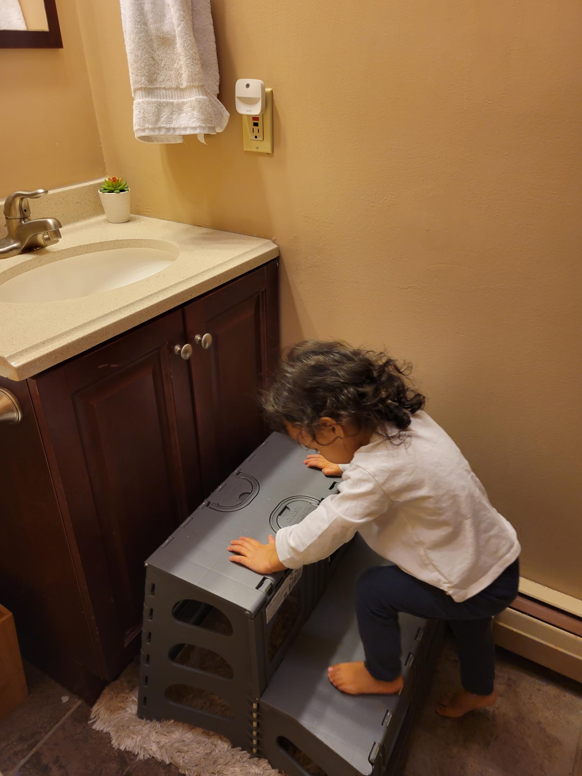 • Reach High Shelves Easily: The foldable step stool for kids is almost 18 inches tall. It helps you reach the top of kitchen cabinets, pantries, and shelves in your closet. You can use it anywhere around the house. The foldable step stool is good for kids and adults. It gives a stable platform for cleaning, painting, and other tasks.