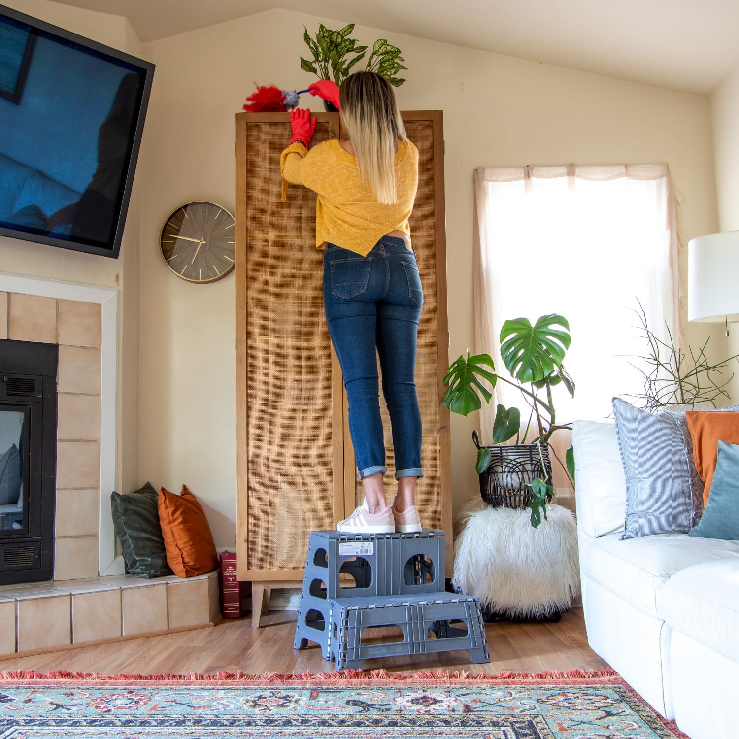 • One-Hand Folding Stool: Our 2-step stool is easy to fold with one hand, offering convenient one-handed open and close functionality. It's ideal for adults, seniors, kids, and toddlers. It helps with everyday tasks like loading reaching high shelves.