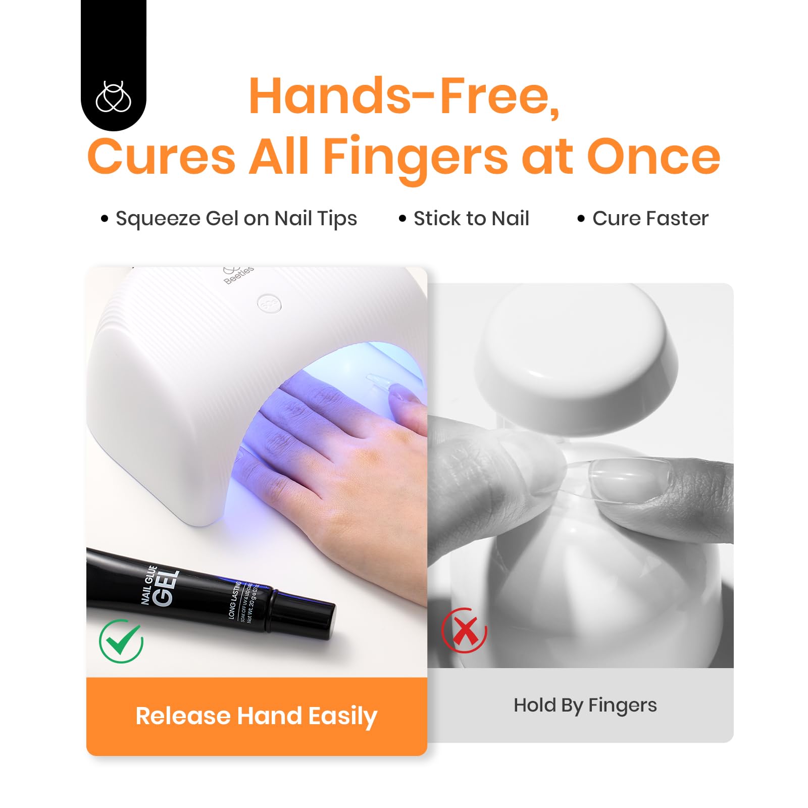 • Efficient &Convenient: Nail Glue Gel boasts a convenient hands-free design, enabling both manicurist and enthusiasts to apply nail tips without needing to hold them in place during the UV curing process. You can apply all five fingers at once and cure them together, effortlessly saving you up to five times the usual nail art time.