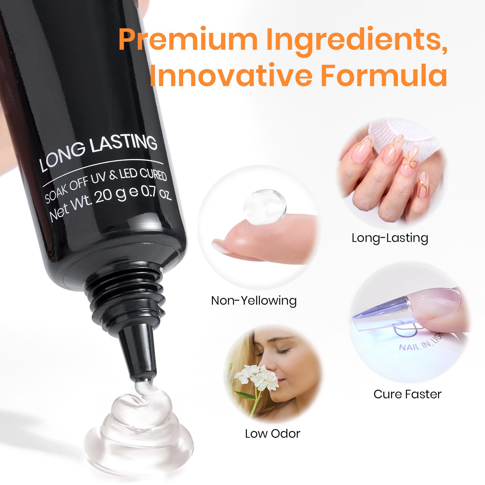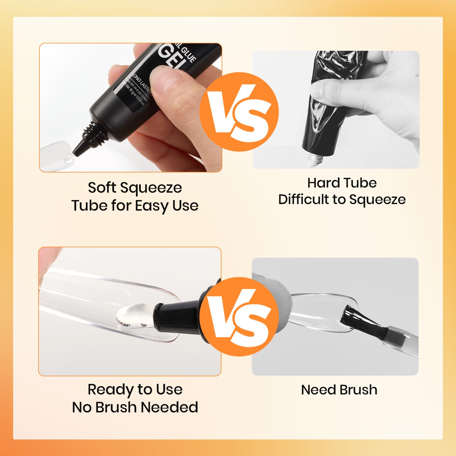 • Long-lasting and Durable: Nail Glue Gel exhibits exceptional filling capabilities, seamlessly adapting to any nail tips available and effectively filling in vertical lines and depressions on the nail surface. This not only keeps your nail art free from hooking issues but also reduces the formation of bubbles, effectively preventing detachment and lifting.