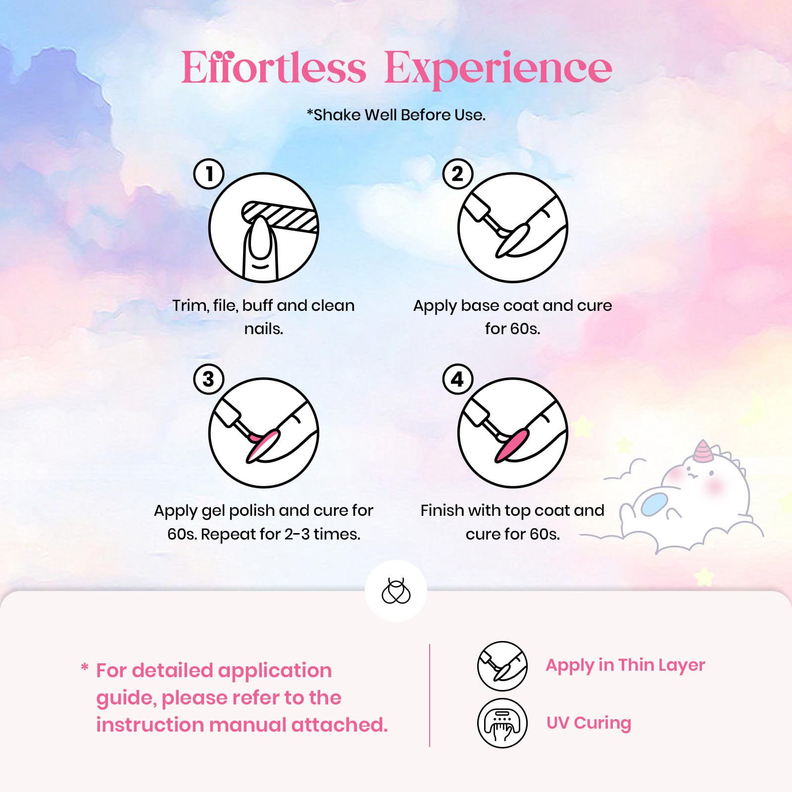 • Harmless and Health: Made with 9 harmless ingredients and odorless, so it won't damage nails. It doesn't contain irritating ingredients or binders that may cause nail damage.