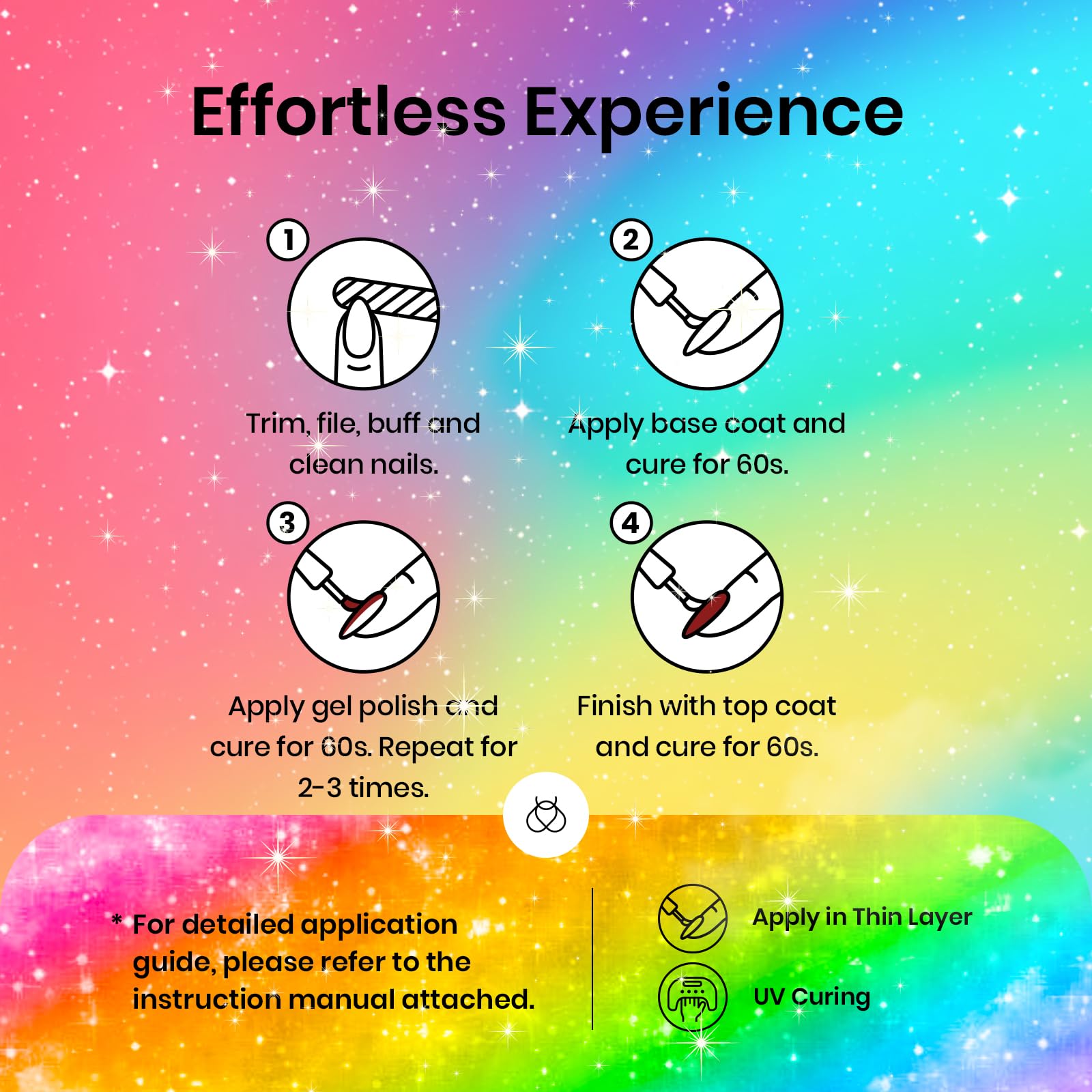 • Package Includes(6*7.5ml /6*0.25fl.oz): 6 colors glitter gel polish colors of 0.25 fl.oz (7.5ml) each. Flash Dimond gel nail set to enjoy the nail art from the comfort of your own home!This is also great for holidays.