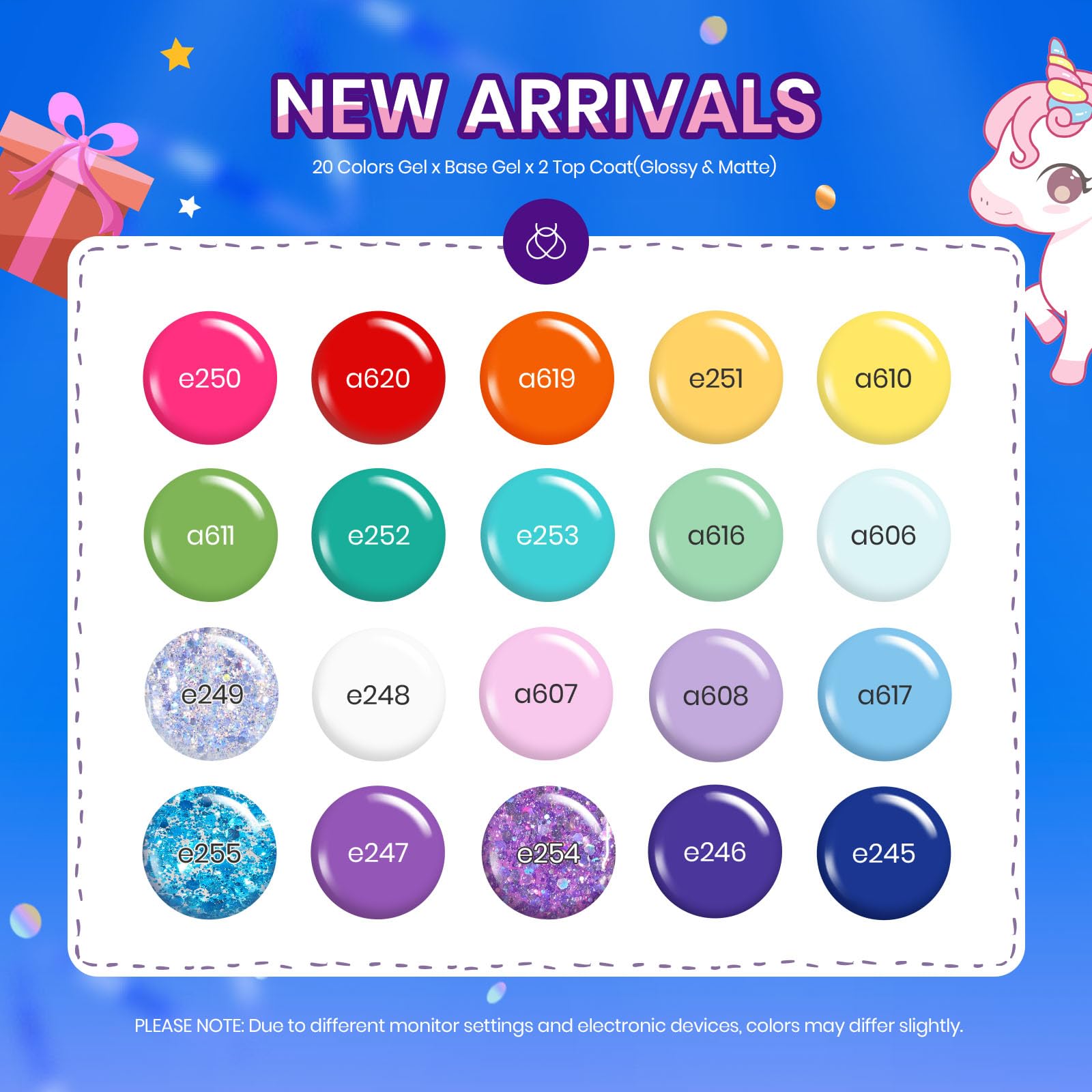 • WHAT YOU GET: Upgraded Beetles Rainbow nail color trends in 2024, 20 X Mini Gel Colors (5ml./each bottle) + 3 x No Wipe Base and Glossy & Matte Top Coat ( 7.5ml./ each bottle)+1 x Double-ended Brush.Color Number is: e250-a620-a619-e251-a610-a611-e252-e253-a616-a606-e249-e248-a607-a608-a617-e255-e247-e254-e246-e245.